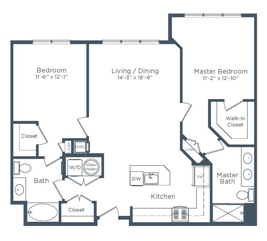 Modelo de apartamento: A2Desde $2,9791 Dormitorio, 1 Baño, 800 sq ftDisponible January 10, 2026![]()