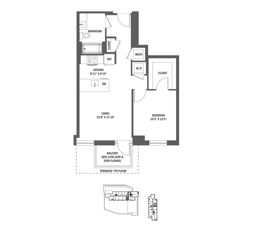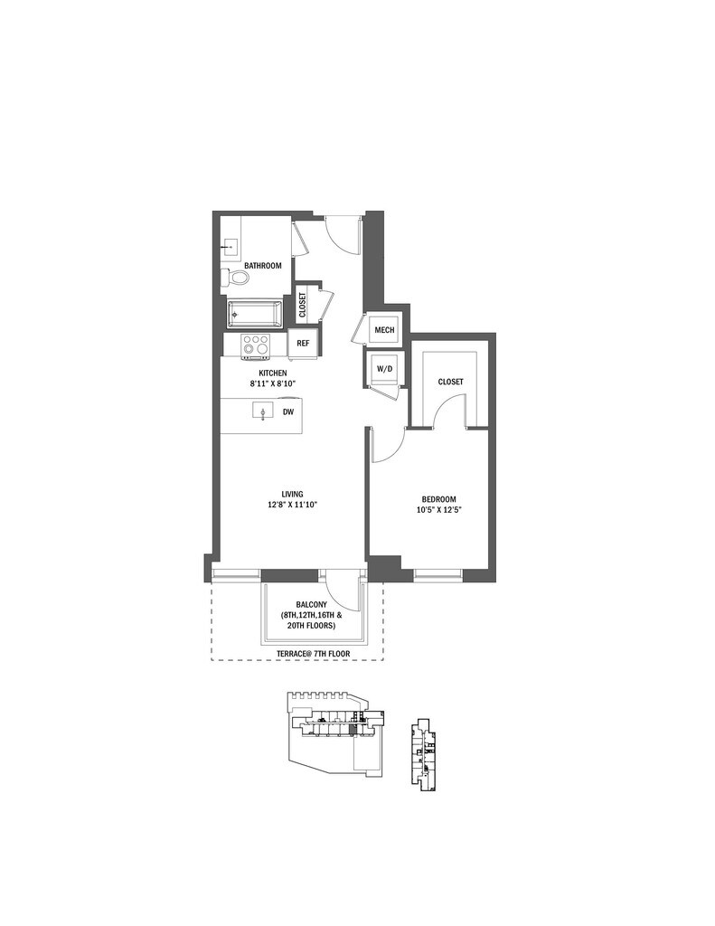 Modelo de apartamento: Studio-S1Llame para PreciosEstudio, 1 Baño, 449 sq ftNo Disponible![]()