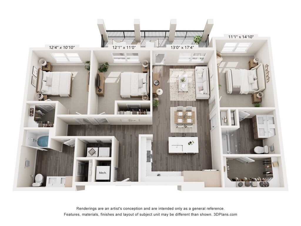 1 Dormitorio, 1 Baño, 858 pies²Disponible AhoraGalería del Modelo