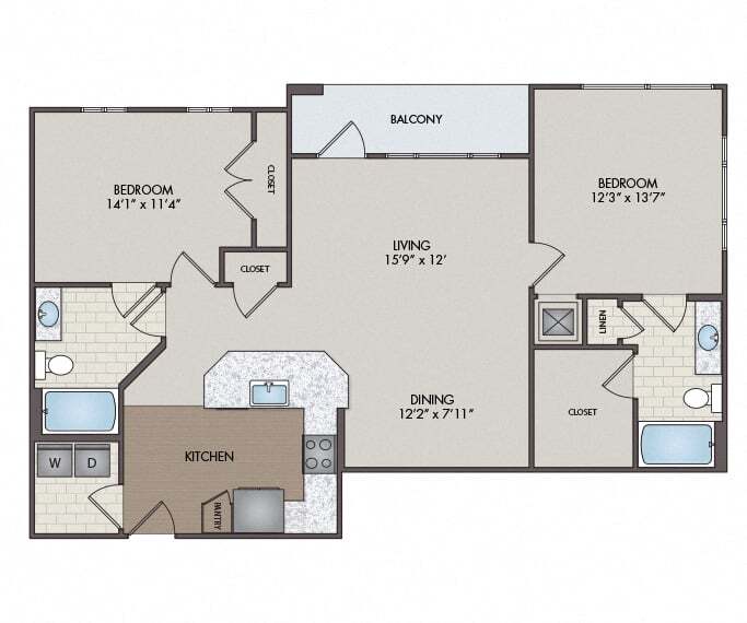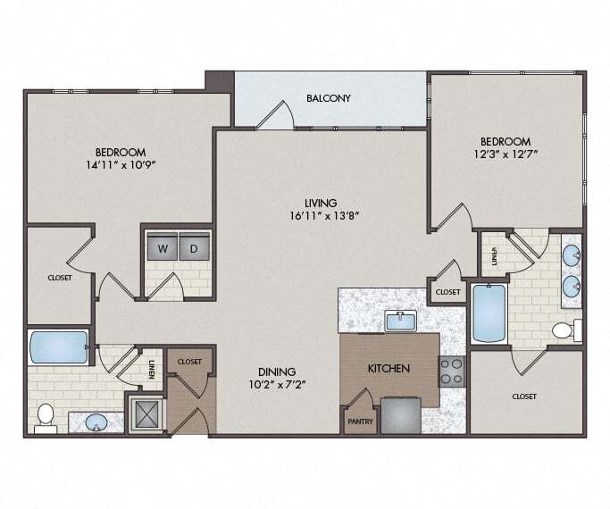 Modelo de apartamento: BelizeDesde $1,5751 Dormitorio, 1 Baño, 721 sq ftDisponible Ahora![]()