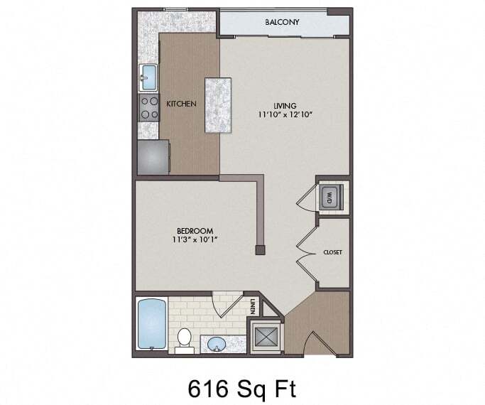 Estudio, 1 Baño, 616 pies²Disponible AhoraGalería del Modelo