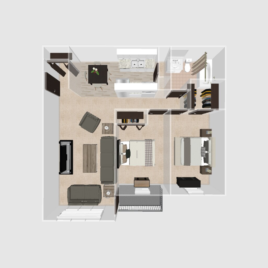 Unidad de apartamento: 614-15Modelo de apartamento: 2BR/1.0BA$1,2152 Dormitorios, 1 Baño, 1150 sq ftDisponible Ahora![]()