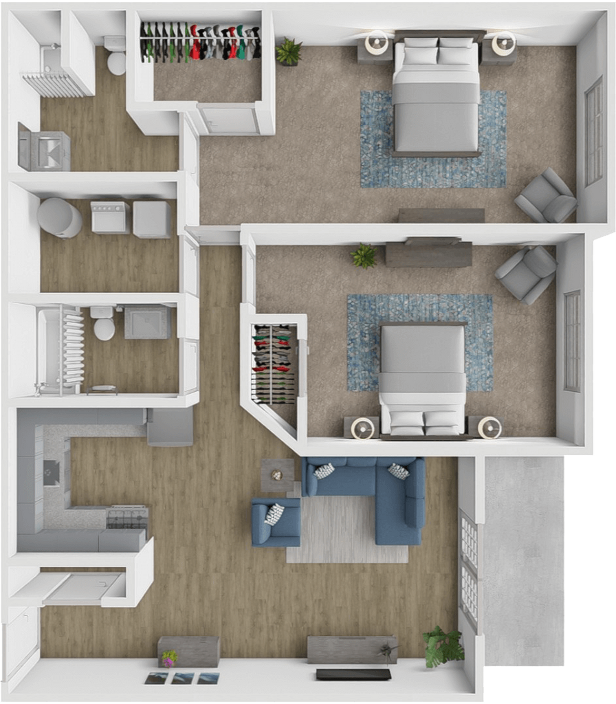 1 Dormitorio, 1 Baño, 900 pies²Disponible AhoraEl más grandeEsta opción tiene las unidades más grandes para este modeloGalería del Modelo