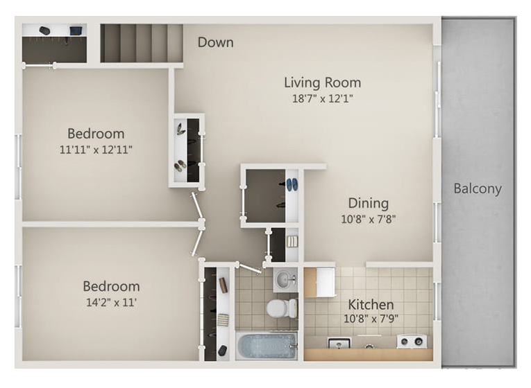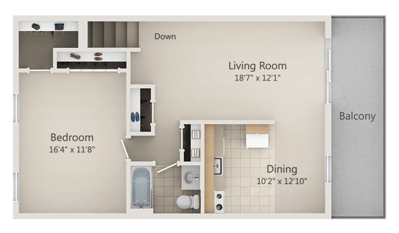 1 Dormitorio, 1 Baño, 700 pies²Disponible AhoraGalería del Modelo