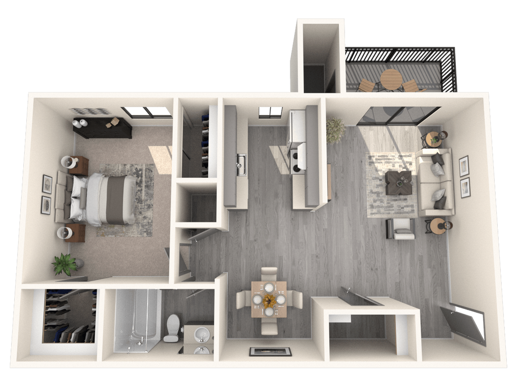 Modelo de apartamento: NorthstarDesde $1,4672 Dormitorios, 1 Baño, 840 sq ftDisponible Ahora![]()