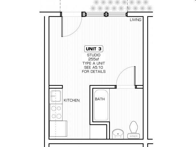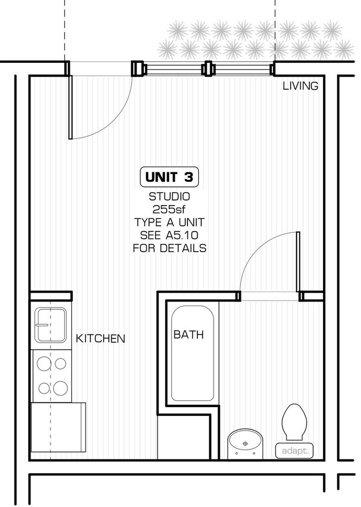 Studio-Small - Imagen 10 Unidad de apartamento: 10Modelo de apartamento: Studio-SmallEstudio, 1 Baño, 255 sq ftDisponible AhoraStudio-Large