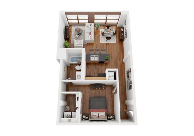 1 Dormitorio, 1 Baño, 689-704 pies²Disponible AhoraGalería del Modelo