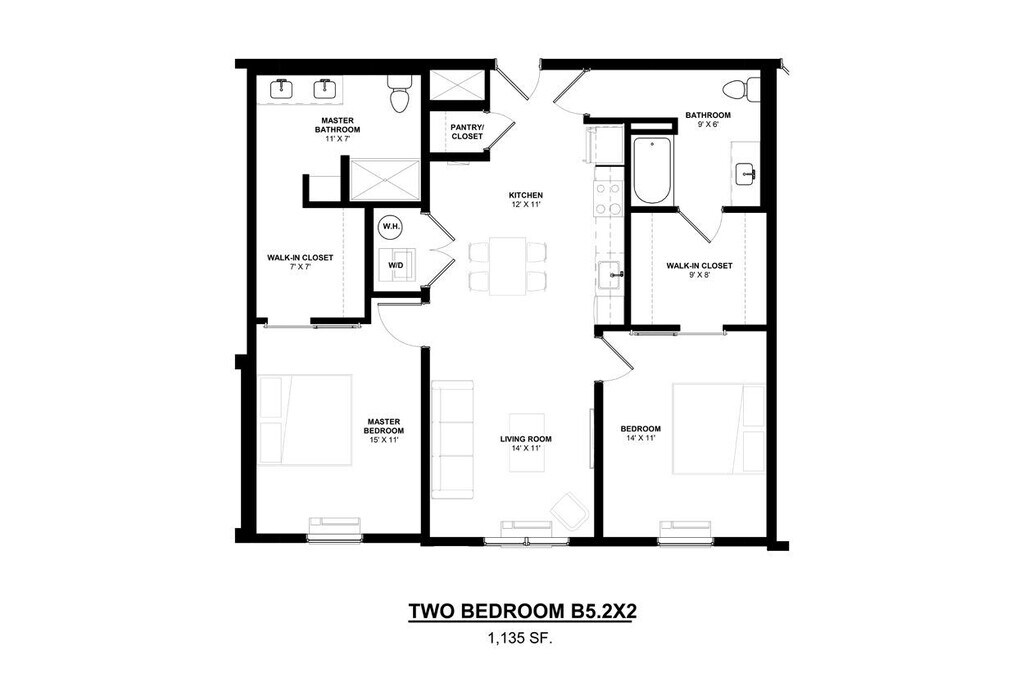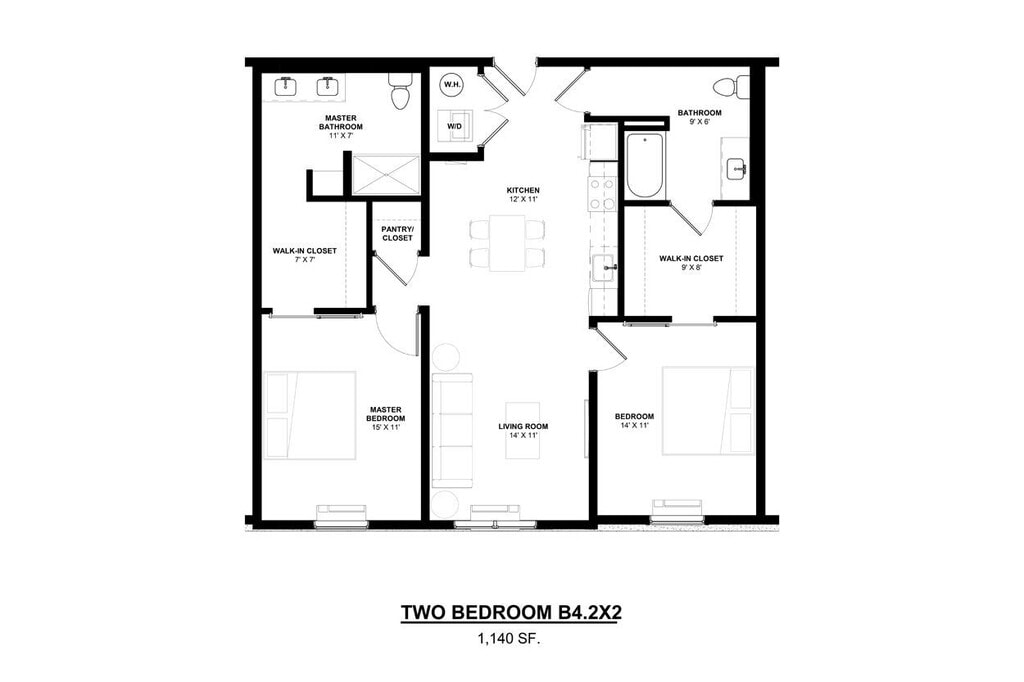 B6.2x2 - Plano 1 Unidad de apartamento: 518Modelo de apartamento: B6.2x2$2,4052 Dormitorios, 2 Baños, 1104 sq ftDisponible January 16, 2026A2.2x2