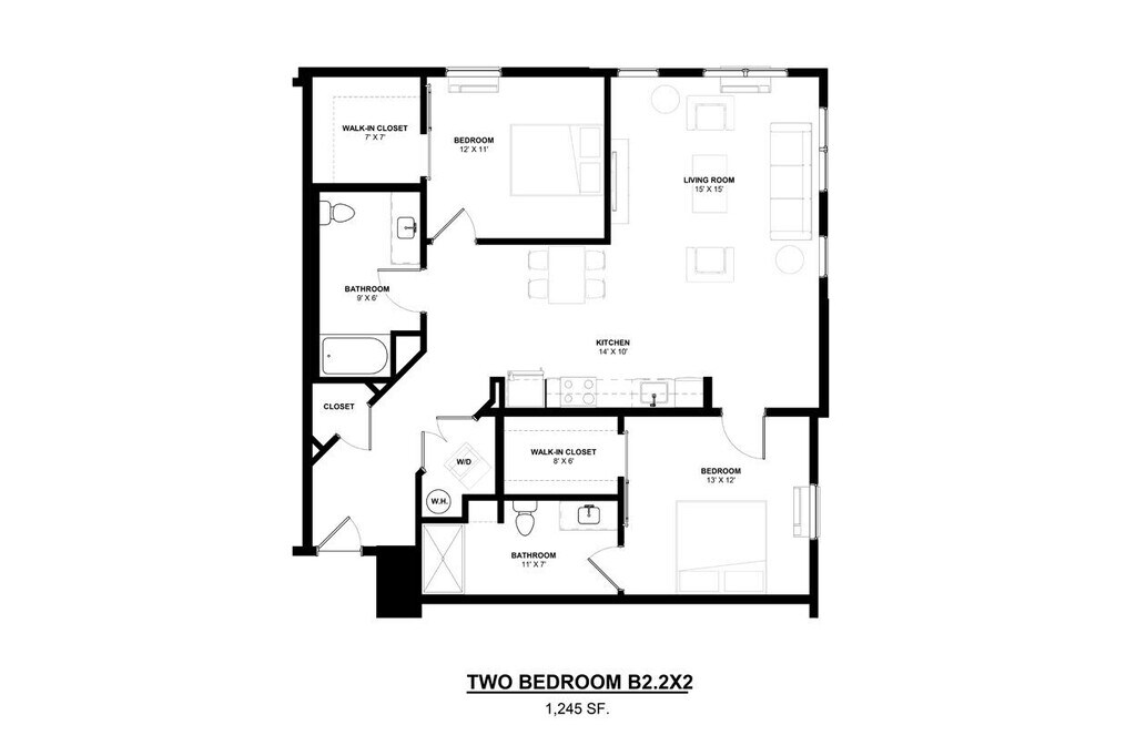 B1.2x2 - Plano 1 Unidad de apartamento: 316Modelo de apartamento: B1.2x2$2,3302 Dormitorios, 2 Baños, 1099 sq ftDisponible January 7, 2026B6.2x2