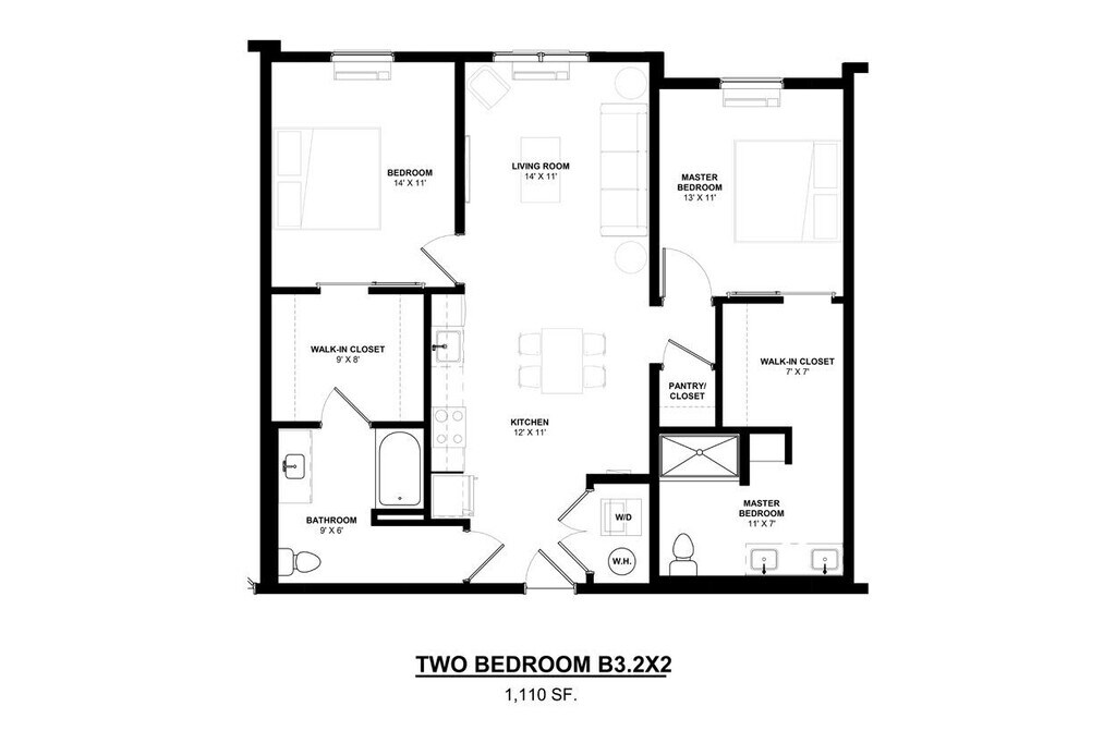 Modelo de apartamento: B6.2x2$2,4052 Dormitorios, 2 Baños, 1104 sq ftDisponible January 16, 2026![]()