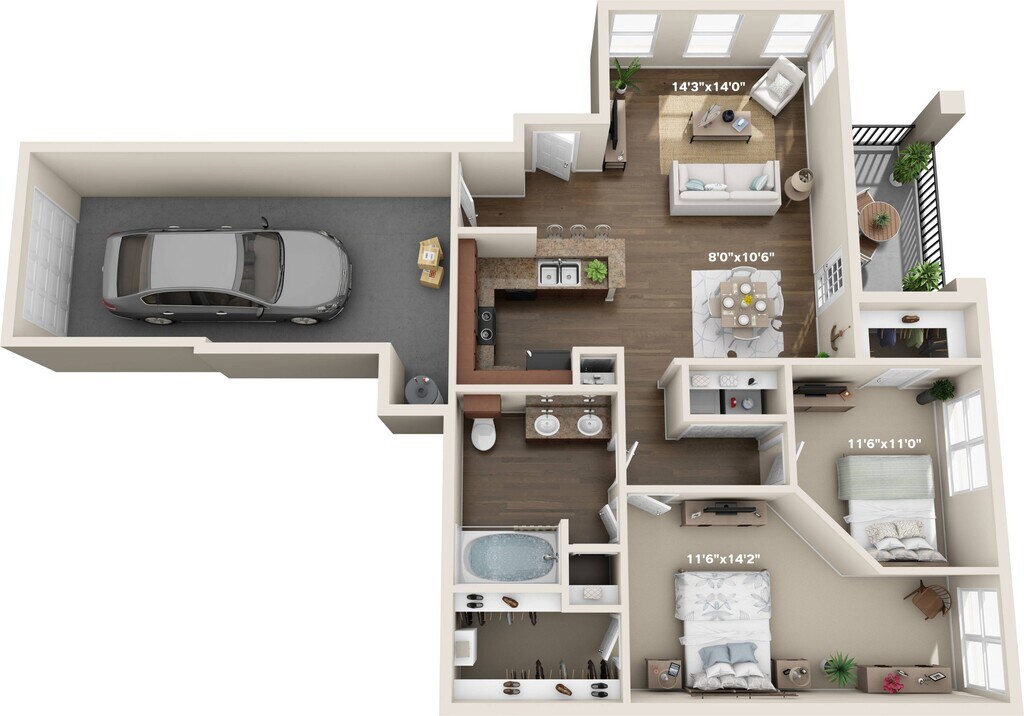Modelo de apartamento: CelestiaDesde $1,5301 Dormitorio, 1 Baño, 903 sq ftDisponible Ahora![]()