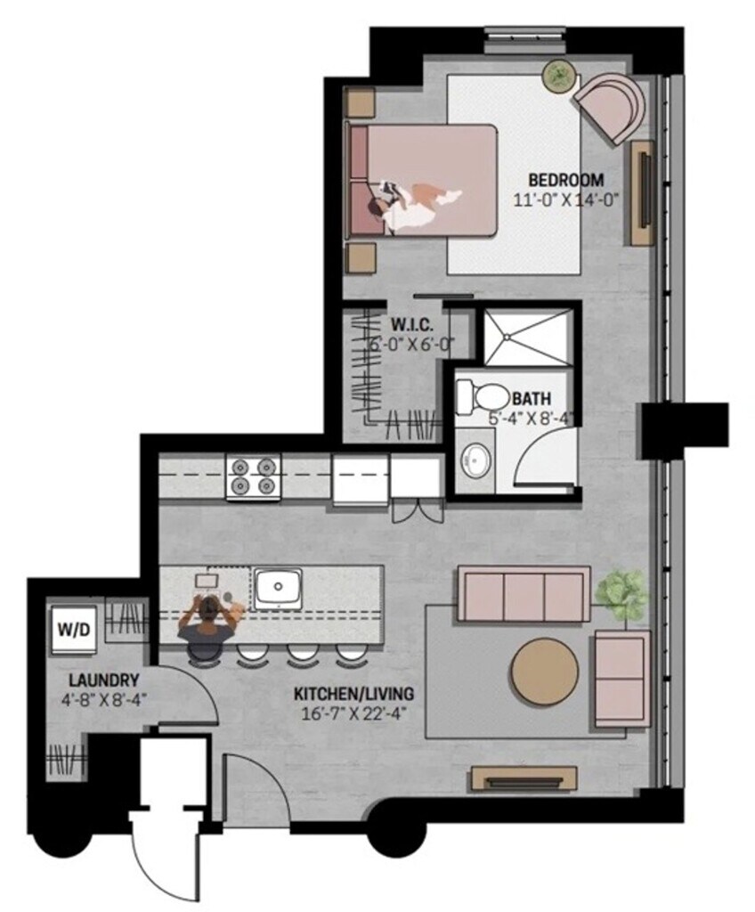 The Chicago - Imagen 1 Unidad de apartamento: 603Modelo de apartamento: The Chicago$1,295Estudio, 1 Baño, 495 sq ftDisponible December 10, 20251 Dormitorio