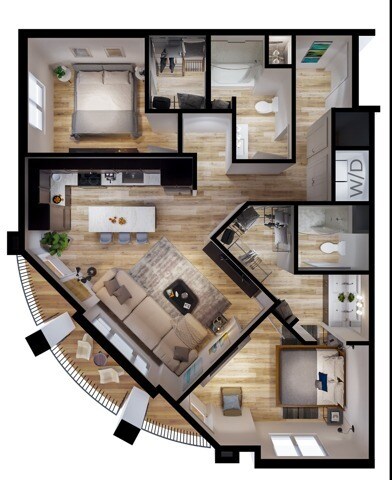 Modelo de apartamento: VanBurenDesde $1,7782 Dormitorios, 1 Baño, 1164-1178 sq ftDisponible Ahora![]()