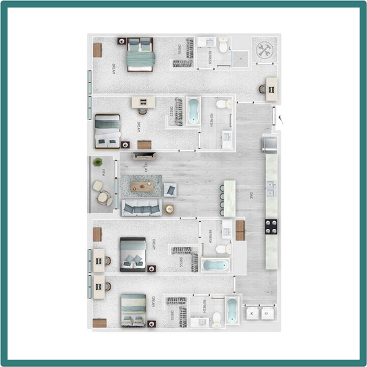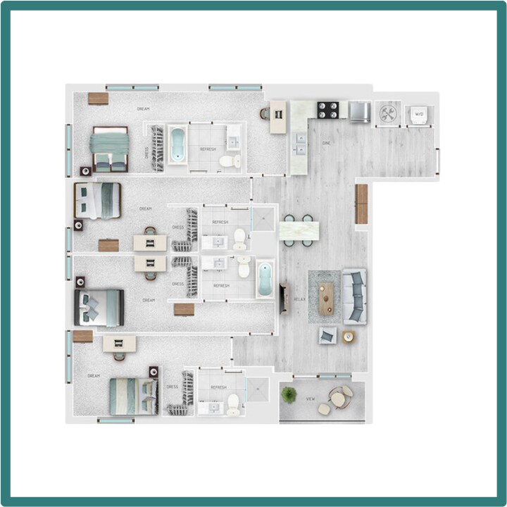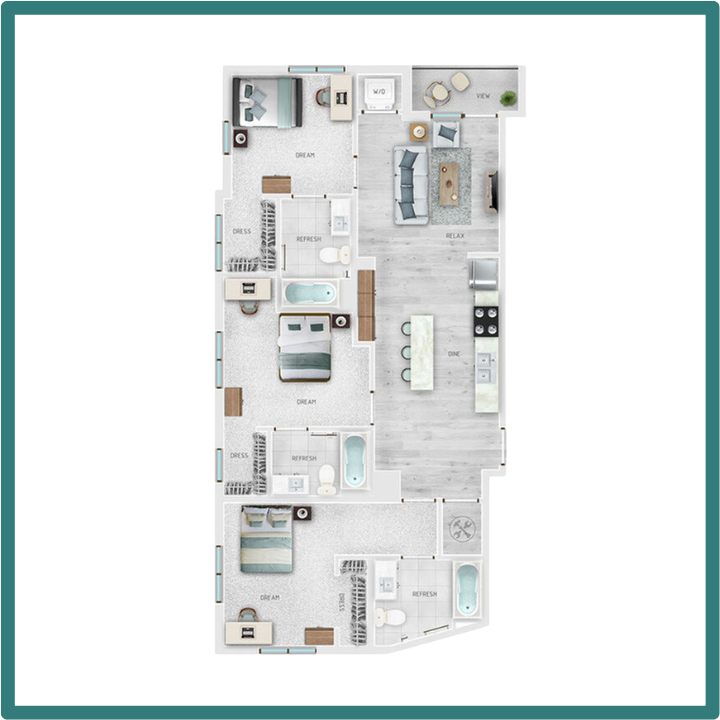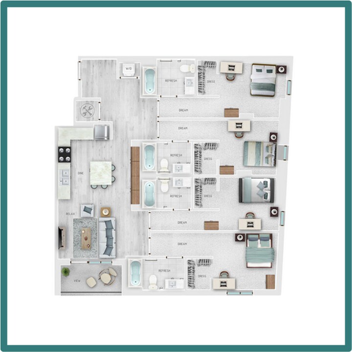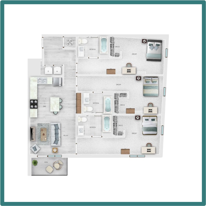 Modelo de apartamento: 3 Bed 3 Bath ADesde $1,6493 Dormitorios, 3 Baños, 1056-1140 sq ftDisponible Ahora![]()