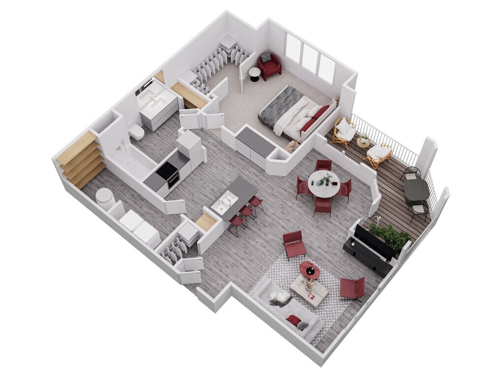 1 Dormitorio, 1 Baño, 707 pies²Disponible AhoraGalería del Modelo