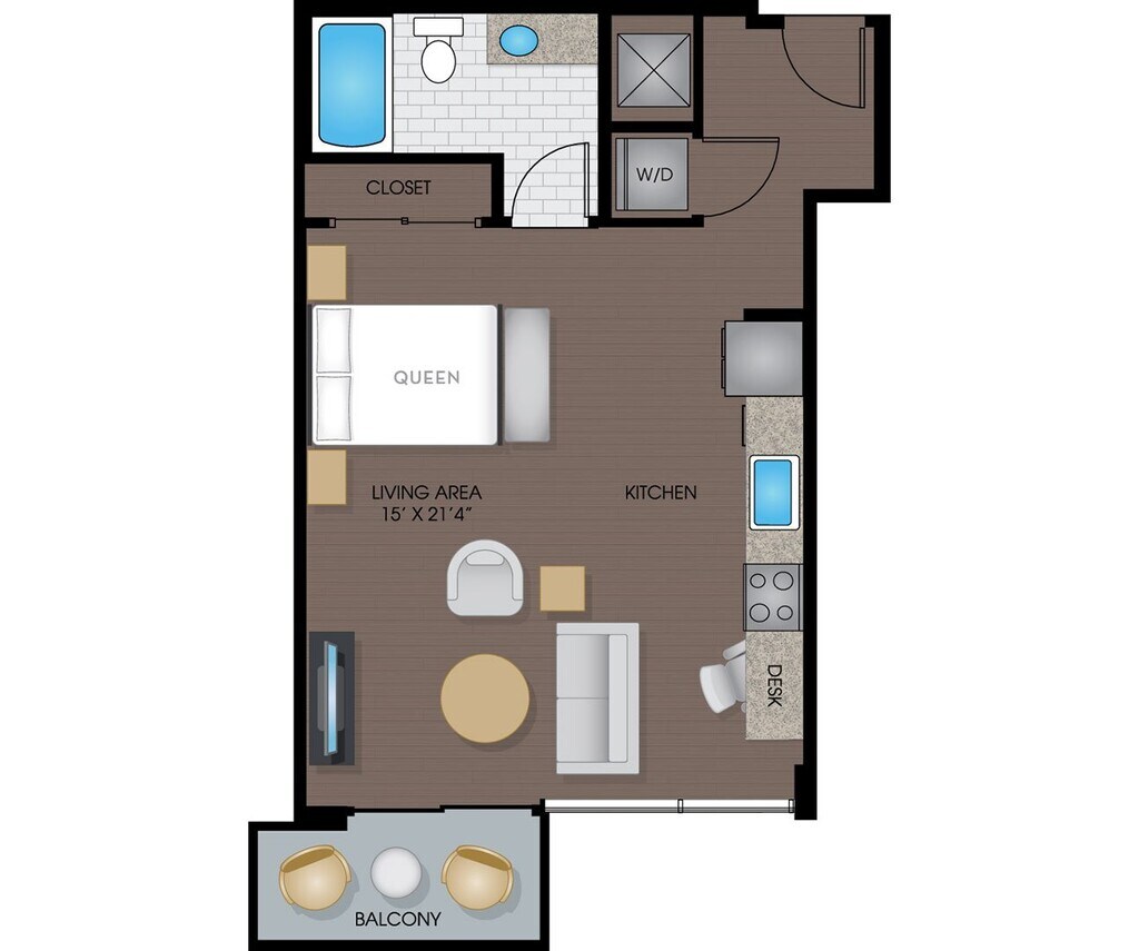 Estudio, 1 Baño, 585-617 pies²Disponible AhoraGalería del Modelo