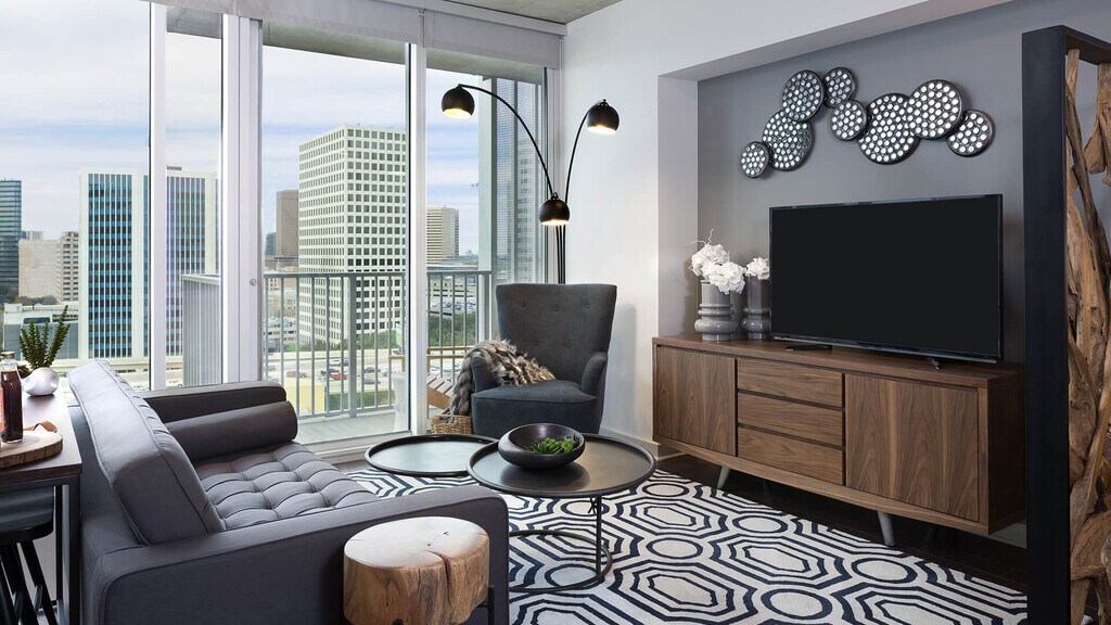 Si estás buscando los mejores apartamentos tipo estudio, de una, dos o dos habitaciones más estudio en Houston, busca SkyHouse River Oaks Apartments. Este nuevo y reluciente rascacielos cuenta con acabados y comodidades de primera calidad que incluyen no una, sino dos piscinas en la azotea, salón al aire libre, sala de conferencias y centro de negocios. Nuestros hogares ofrecen las islas de la cocina, las ventanas del piso a techo con las cortinas solares, y los escritorios incorporados que son perfectos para trabajar desde casa. Con una ubicación ideal justo al sur de Memorial Park, con fácil acceso a las autopistas Katy y Southwest, estos apartamentos de lujo en Houston están a solo minutos de River Oaks District y Galleria.