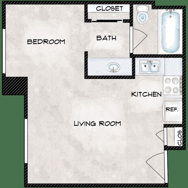 Modelo de apartamento: StudioDesde $725Estudio, 1 Baño, 600-700 sq ftDisponible AhoraPlanosFotos![]()
