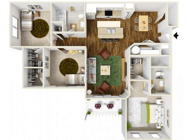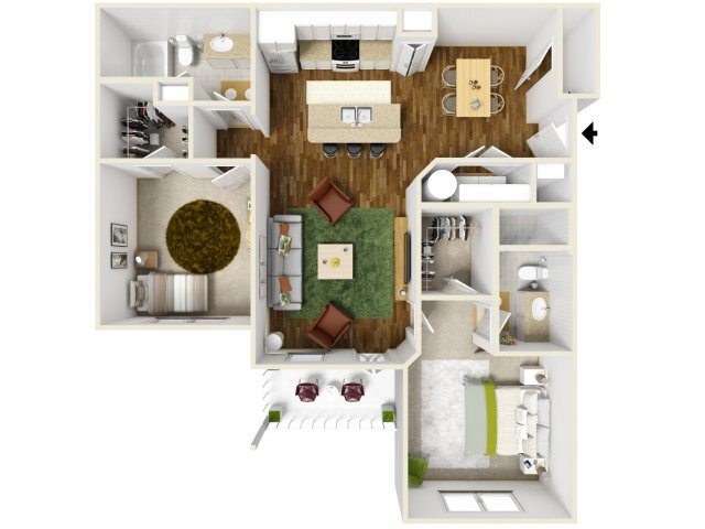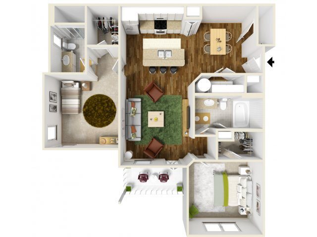 Modelo de apartamento: B3Desde $1,9552 Dormitorios, 2 Baños, 1085 sq ftDisponible Ahora![]()