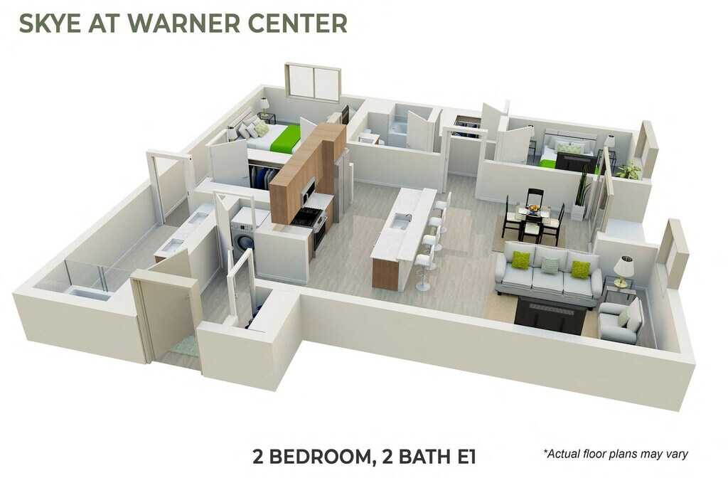 Modelo de apartamento: 2 Bedroom, 2 Bath E1Desde $3,1162 Dormitorios, 2 Baños, 1228 sq ftDisponible Ahora![]()