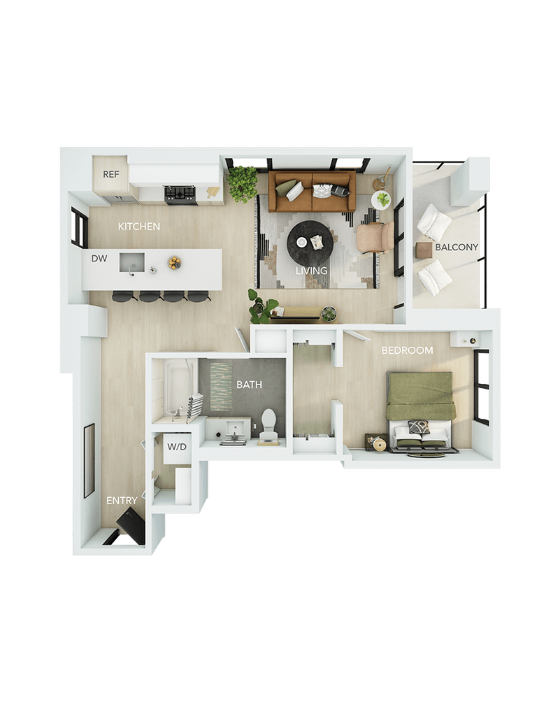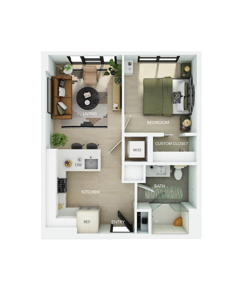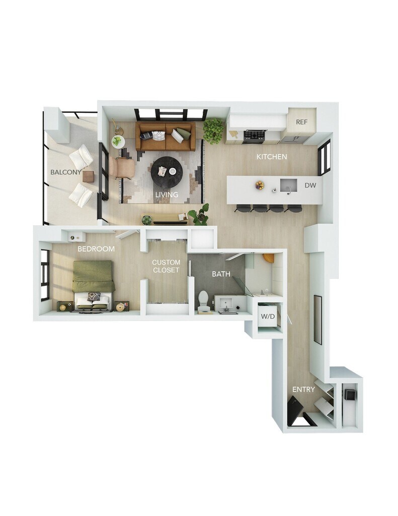 Estudio, 1 Baño, 530 pies²Disponible AhoraGalería del Modelo