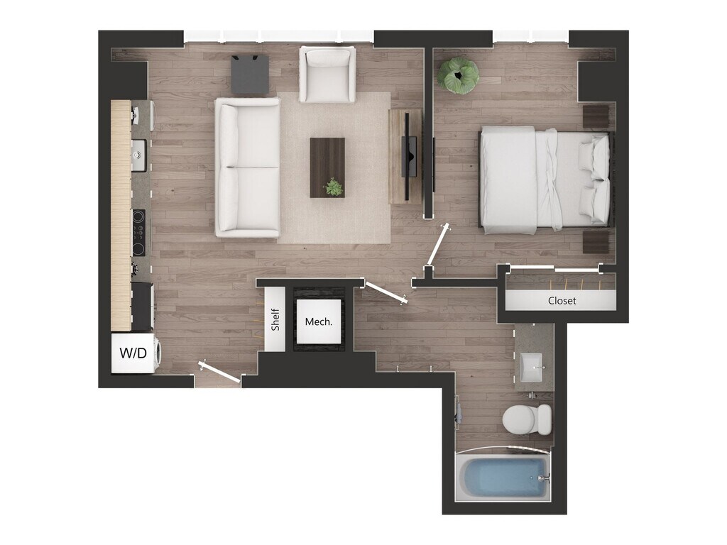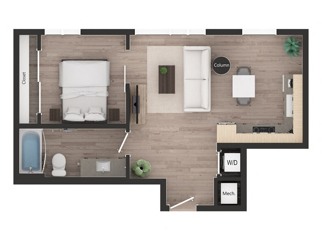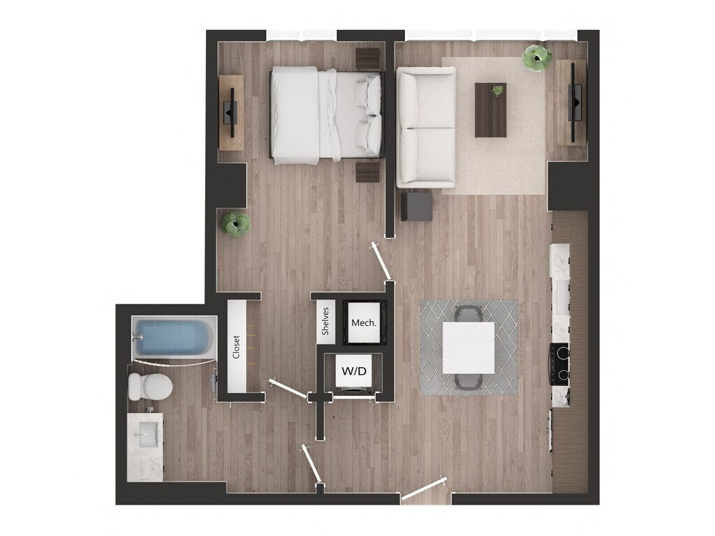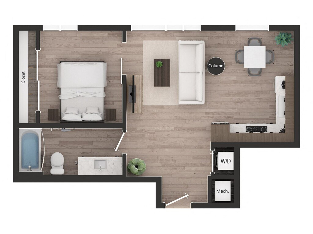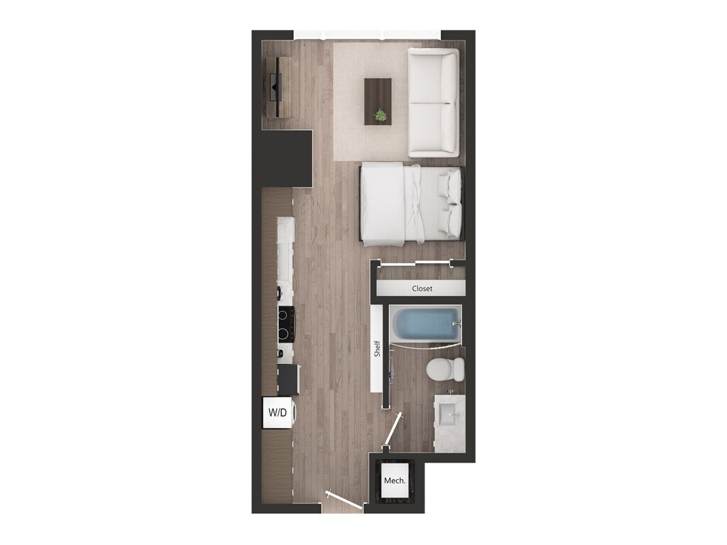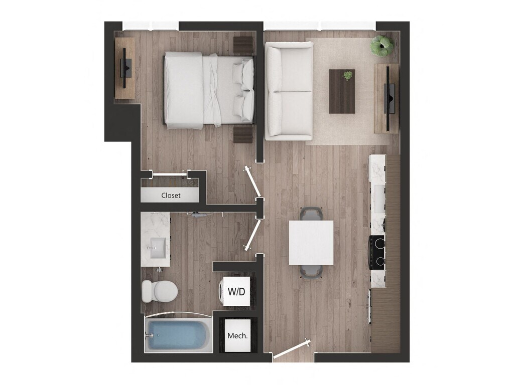 Estudio, 1 Baño, 497 pies²Disponible AhoraGalería del Modelo