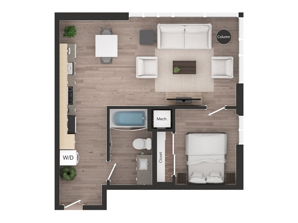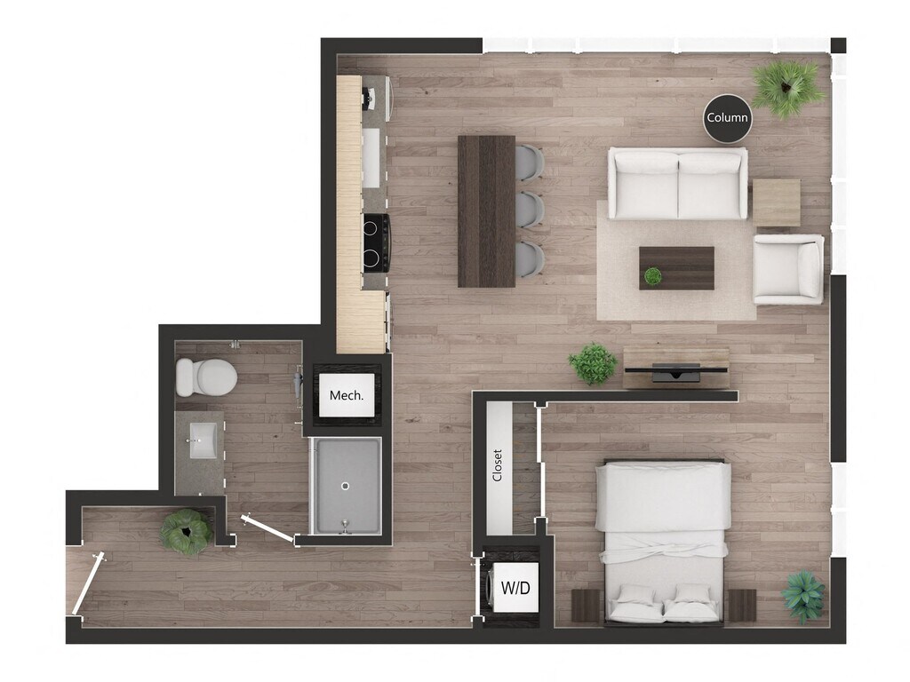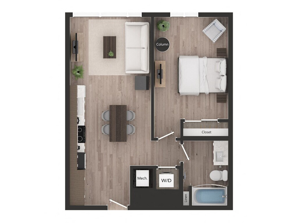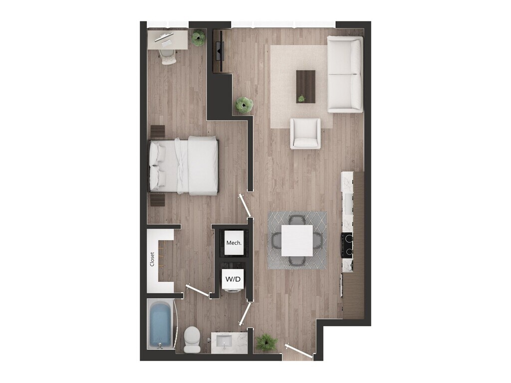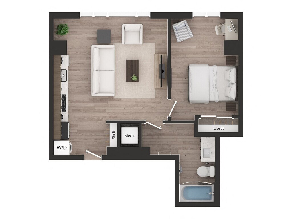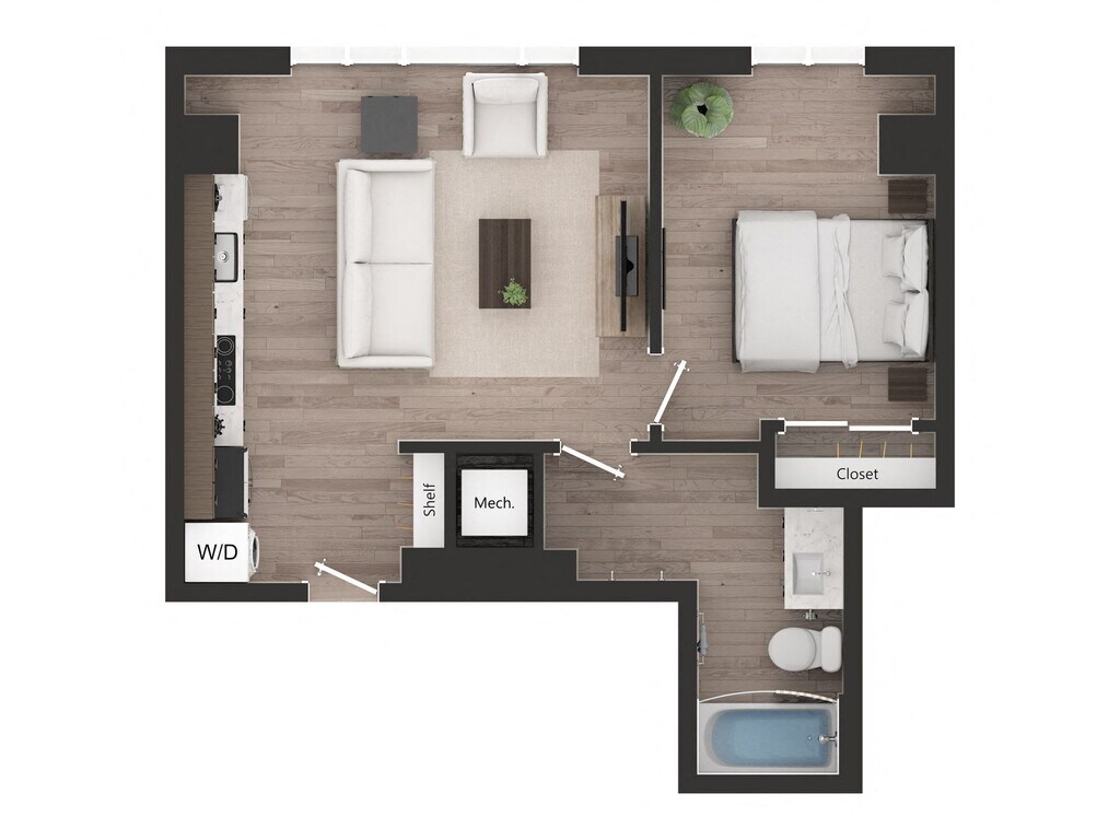 Estudio, 1 Baño, 497 pies²Disponible AhoraGalería del Modelo