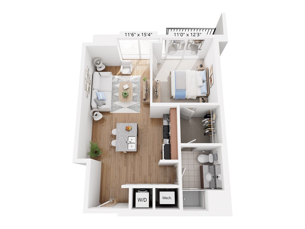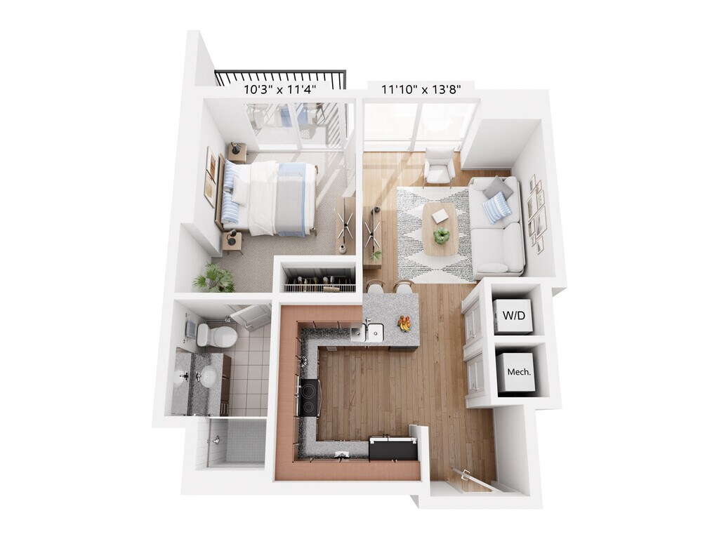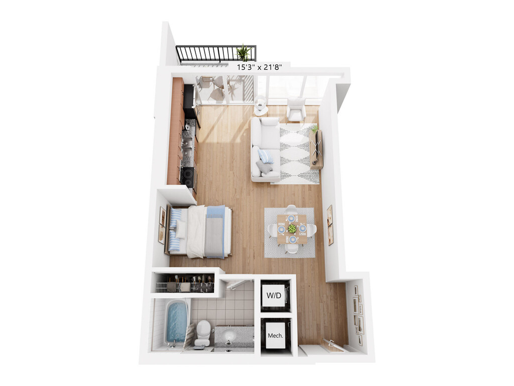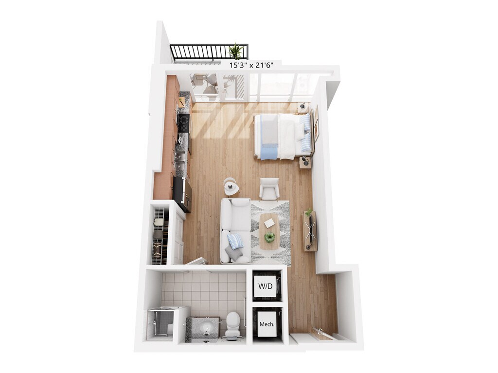 Estudio, 1 Baño, 587 pies²Disponible AhoraGalería del Modelo