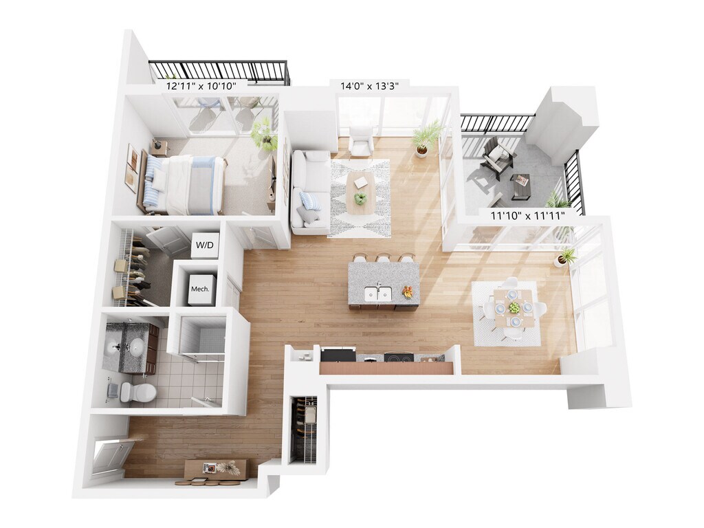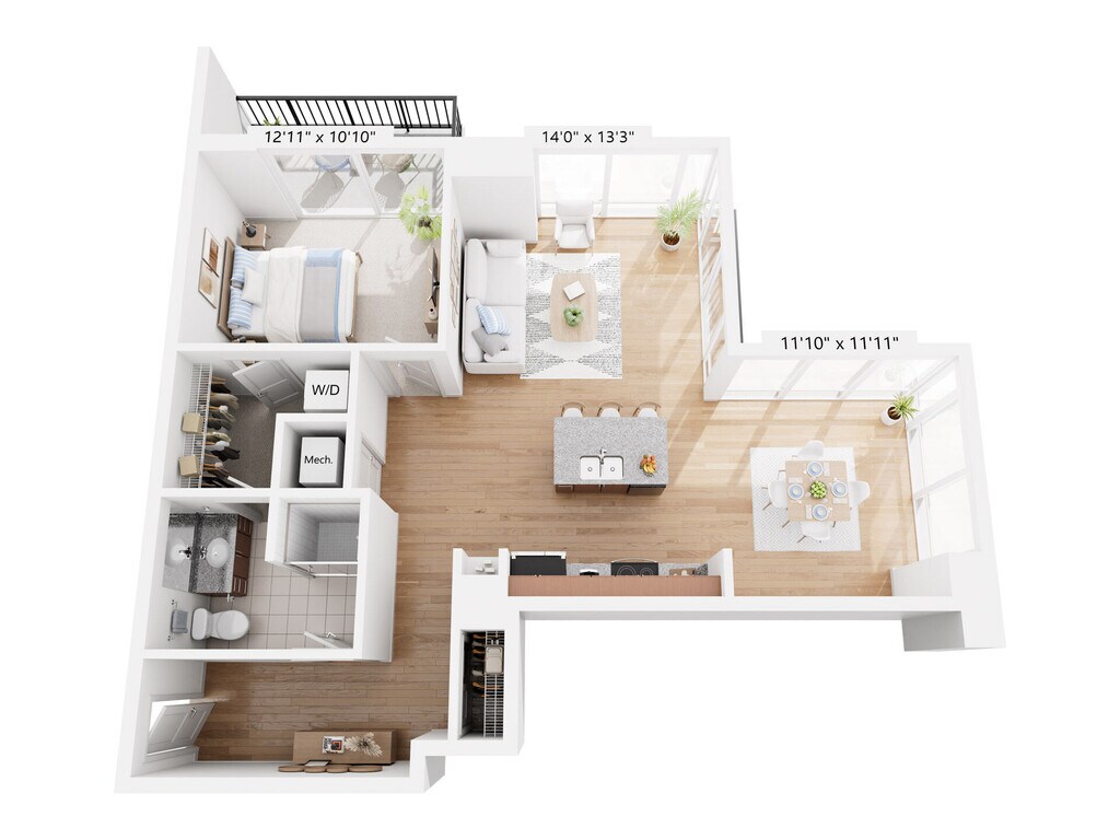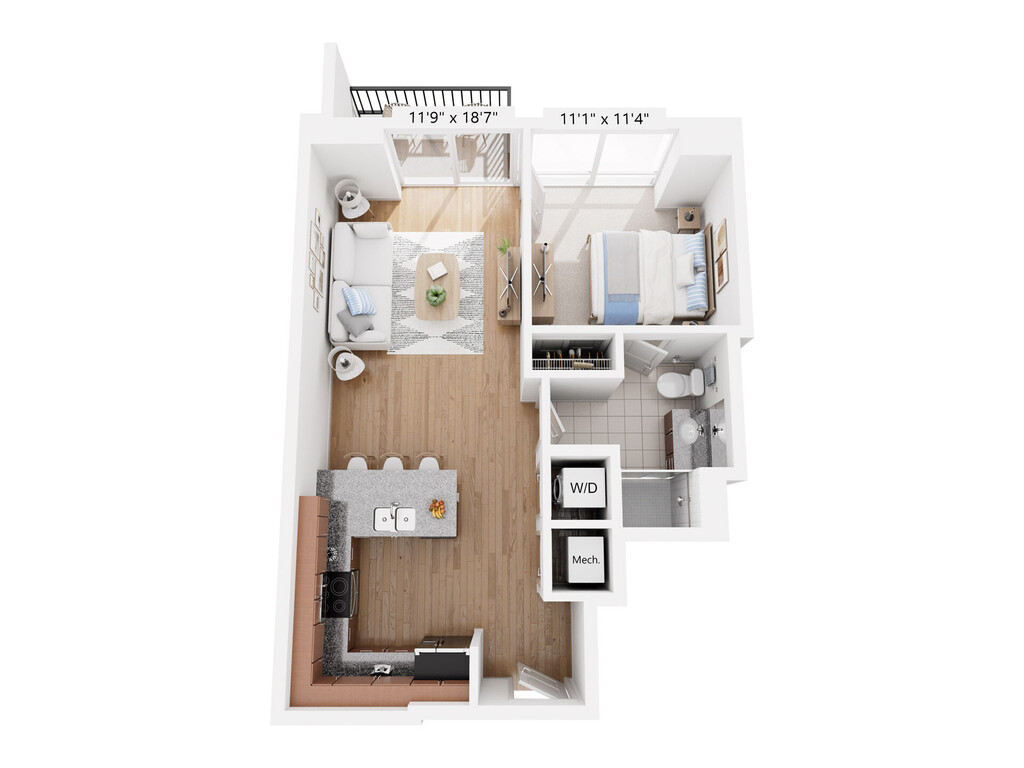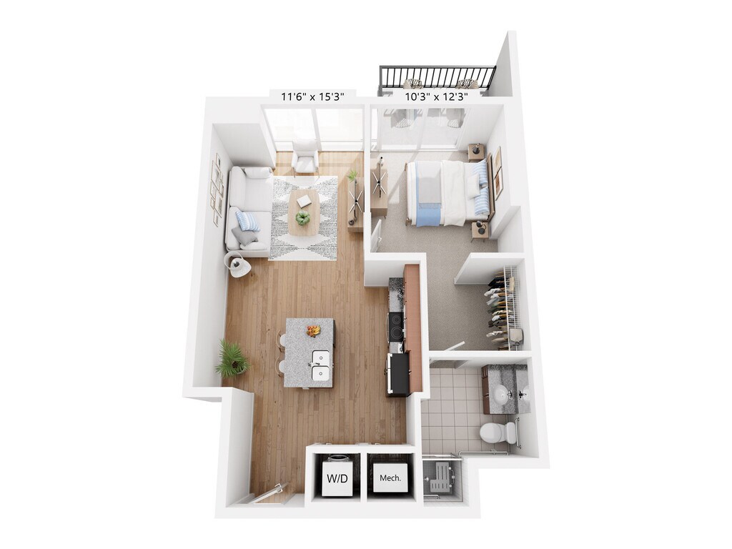 Estudio, 1 Baño, 587 pies²Disponible AhoraGalería del Modelo