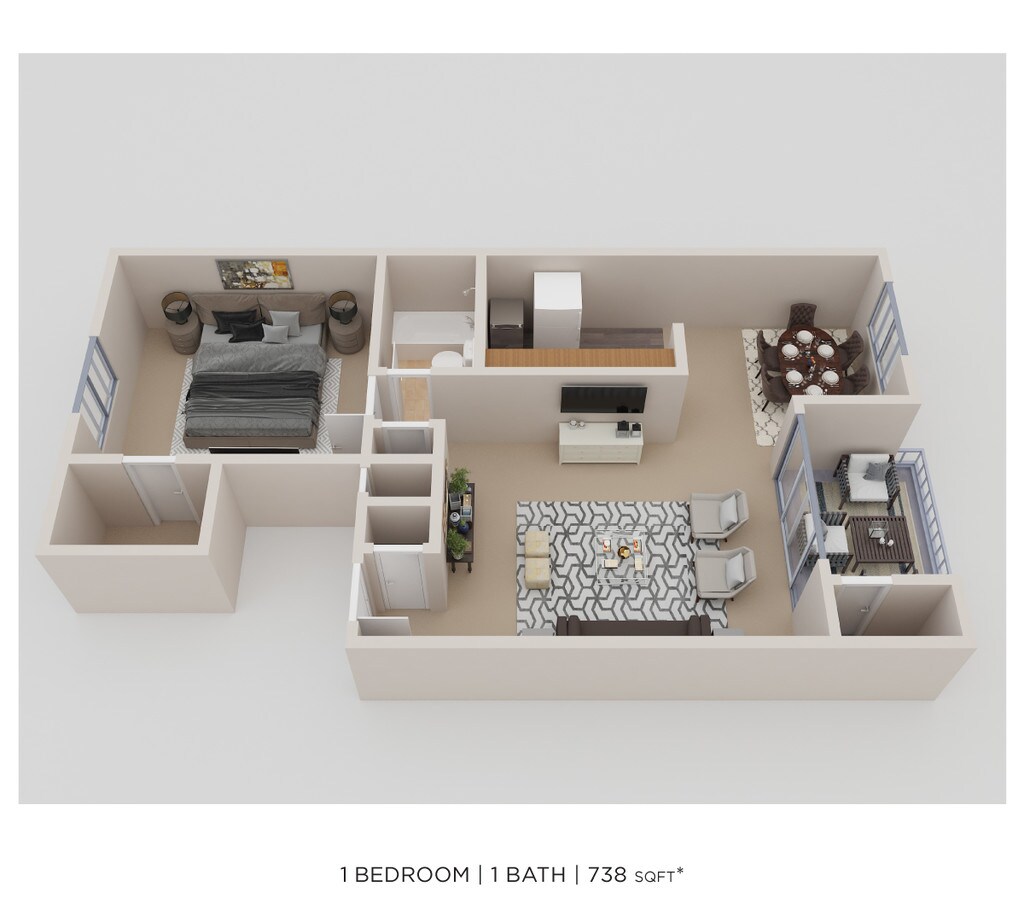 1 Dormitorio, 1 Baño, 789-886 pies²Disponible AhoraGalería del Modelo