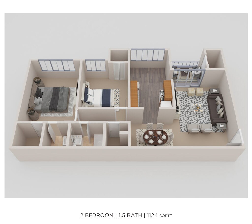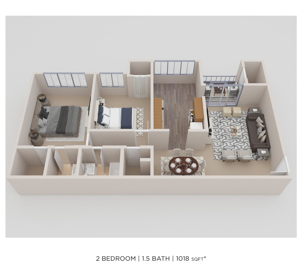 2 Dormitorios, 1 Baño, 1003 pies²Disponible AhoraGalería del Modelo