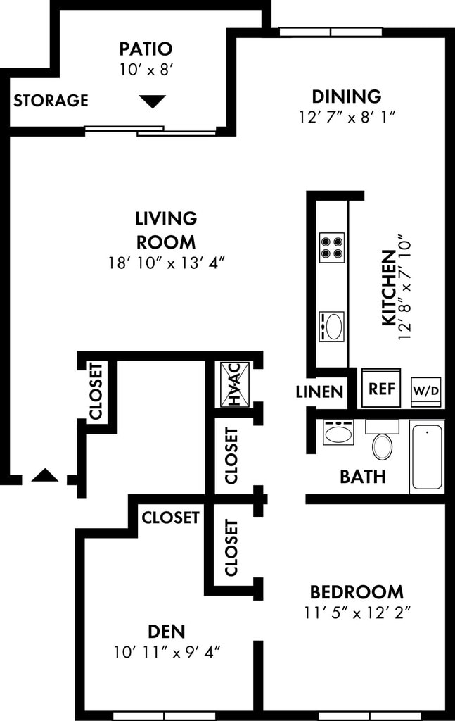 Modelo de apartamento: One Bedroom - 788 sqftLlame para Precios1 Dormitorio, 1 Baño, 788 sq ftNo Disponible![]()