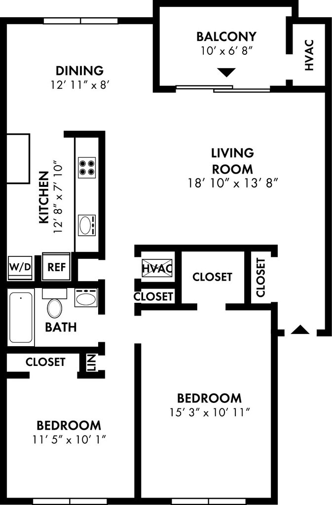Modelo de apartamento: Two Bedroom- 1,003 sqftDesde $1,3452 Dormitorios, 1 Baño, 1003 sq ftDisponible Ahora![]()