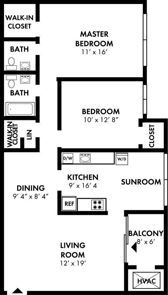 Modelo de apartamento: One Bedroom - 924 sqftLlame para Precios1 Dormitorio, 1 Baño, 924 sq ftNo Disponible![]()