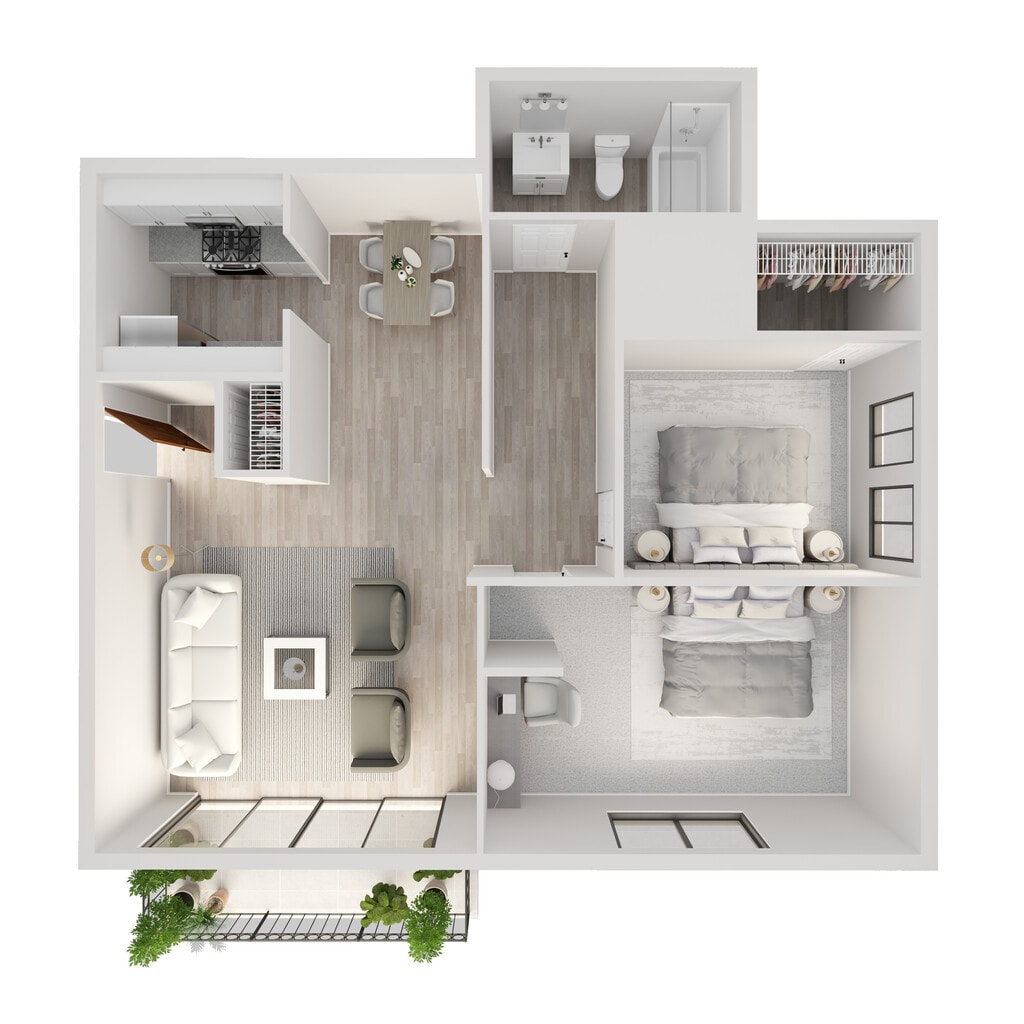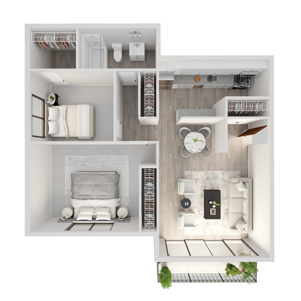 Modelo de apartamento: One Bedroom$2,4001 Dormitorio, 1 Baño, 900 sq ftNo Disponible![]()