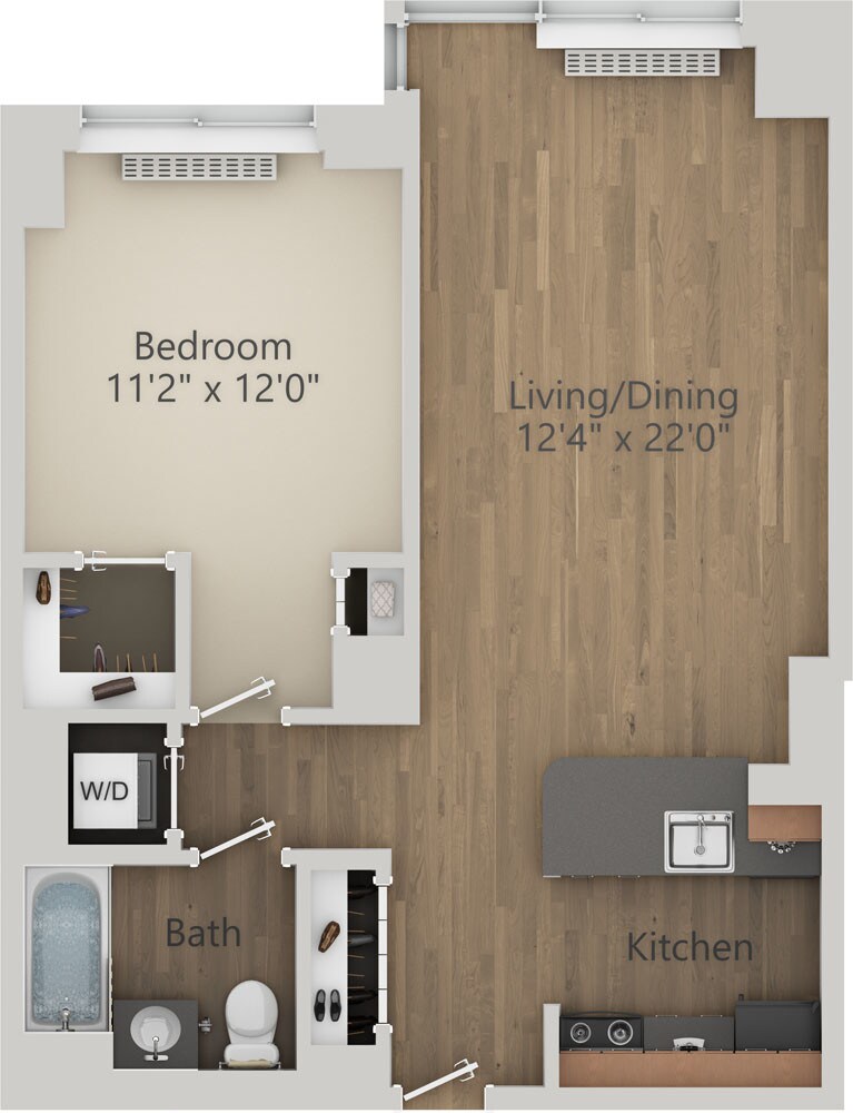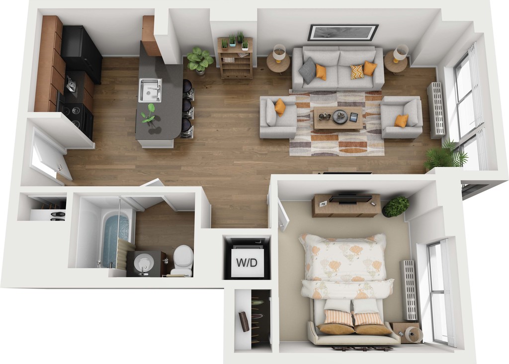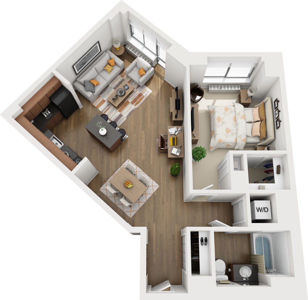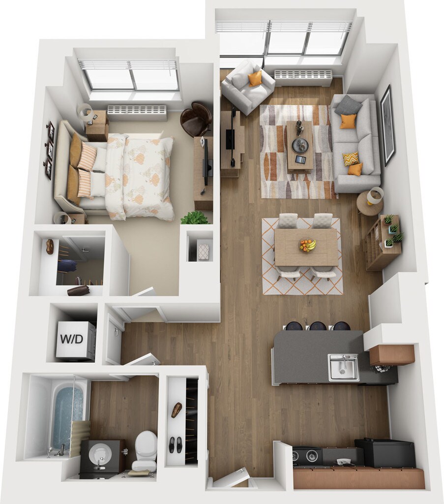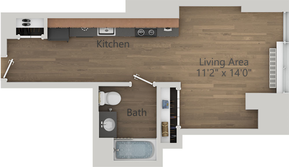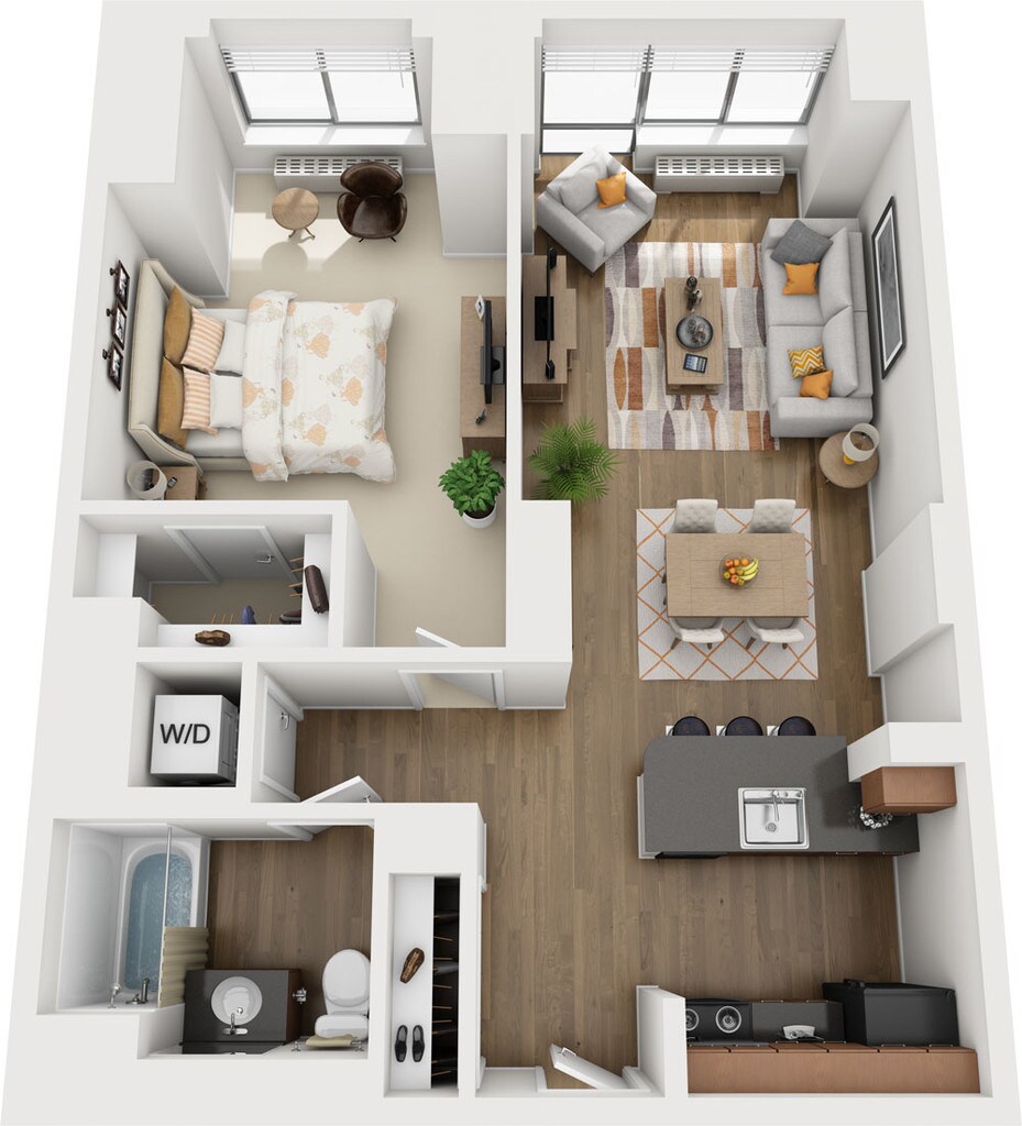 Estudio, 1 Baño, 523 pies²Disponible AhoraGalería del Modelo