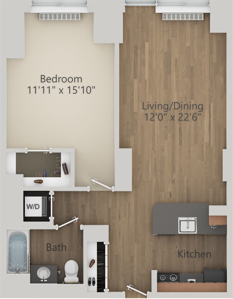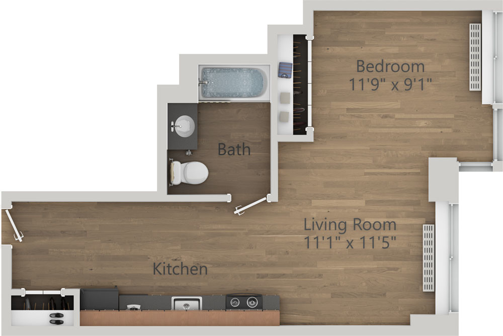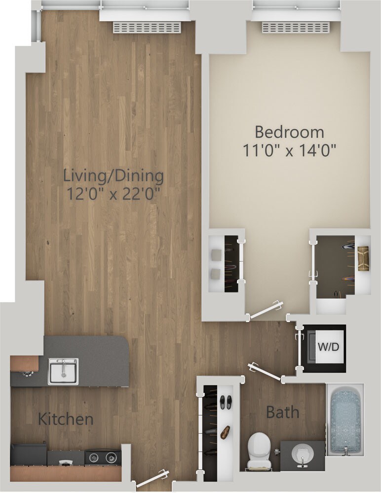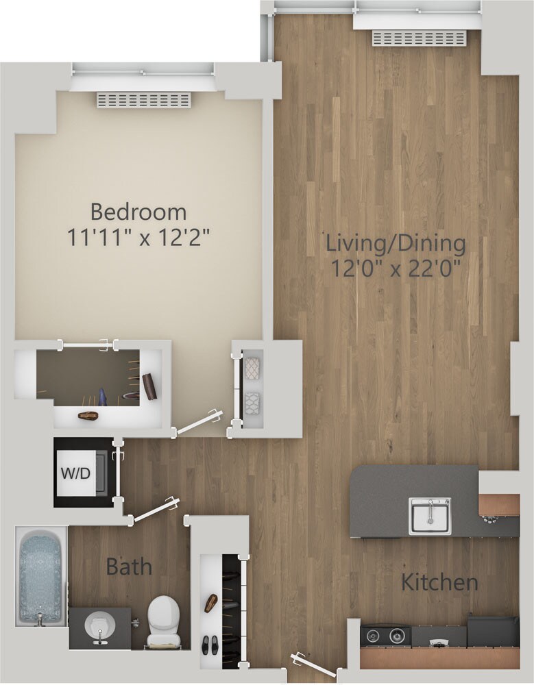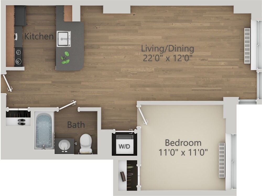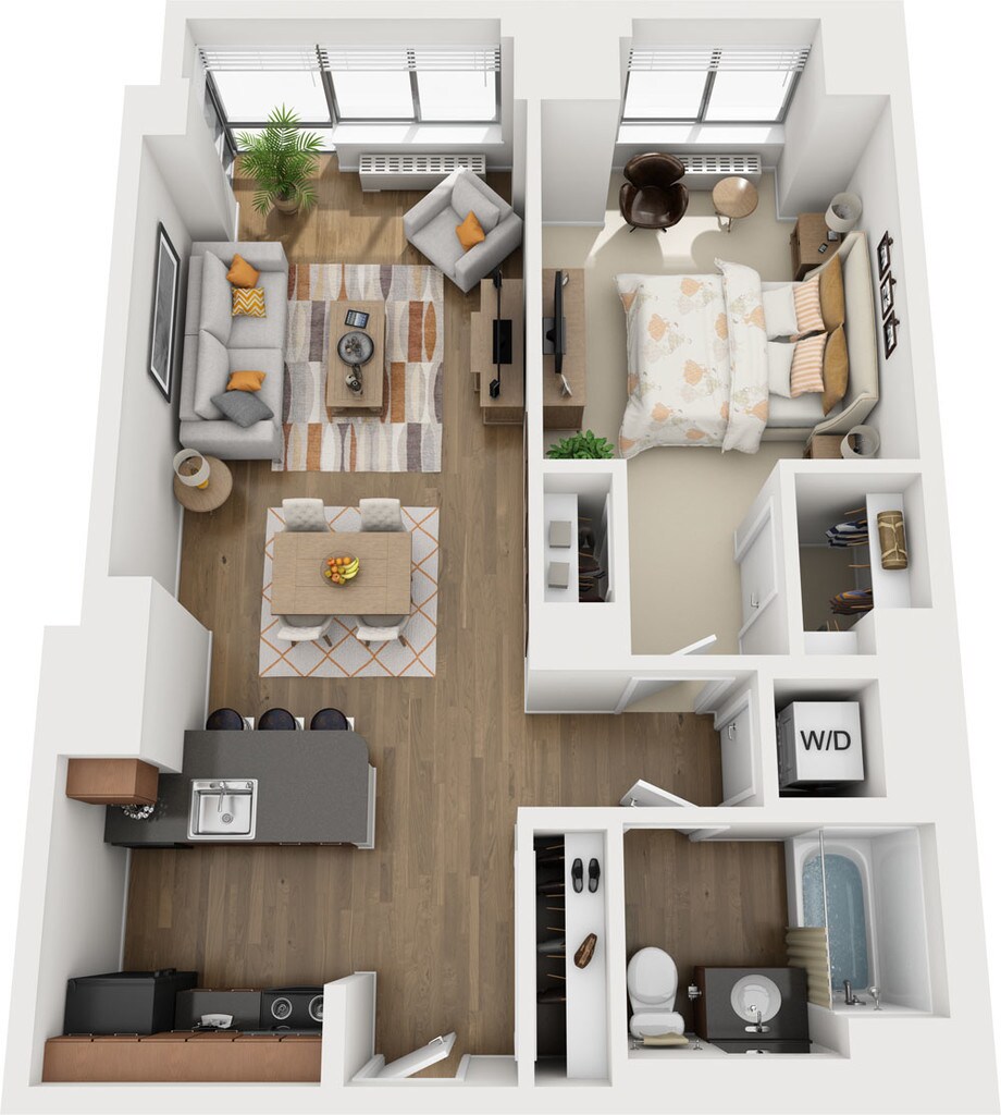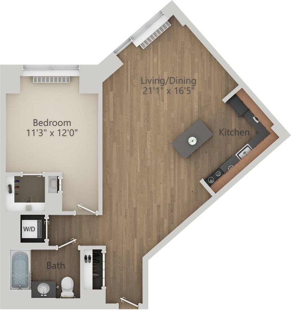 Estudio, 1 Baño, 523 pies²Disponible AhoraGalería del Modelo