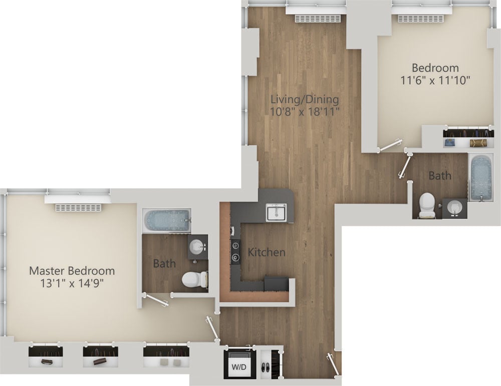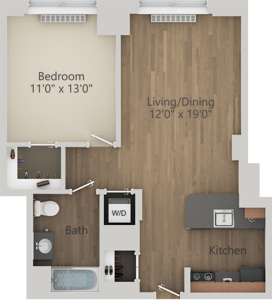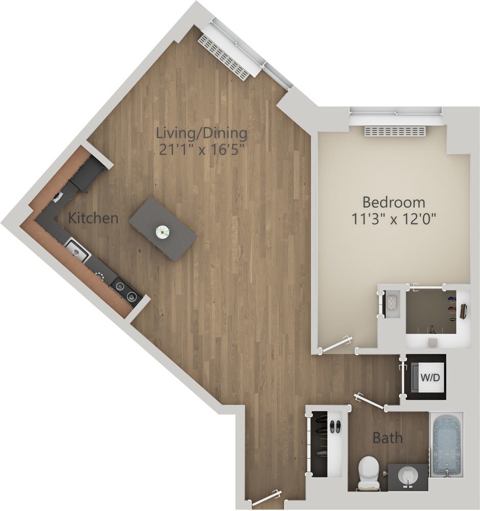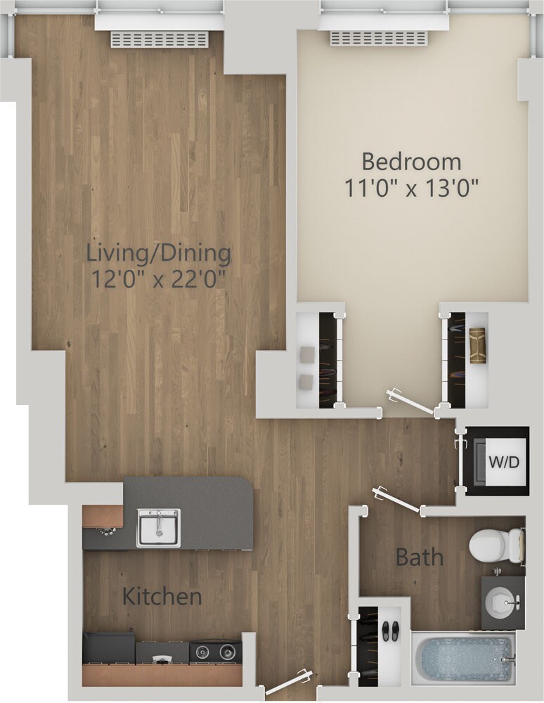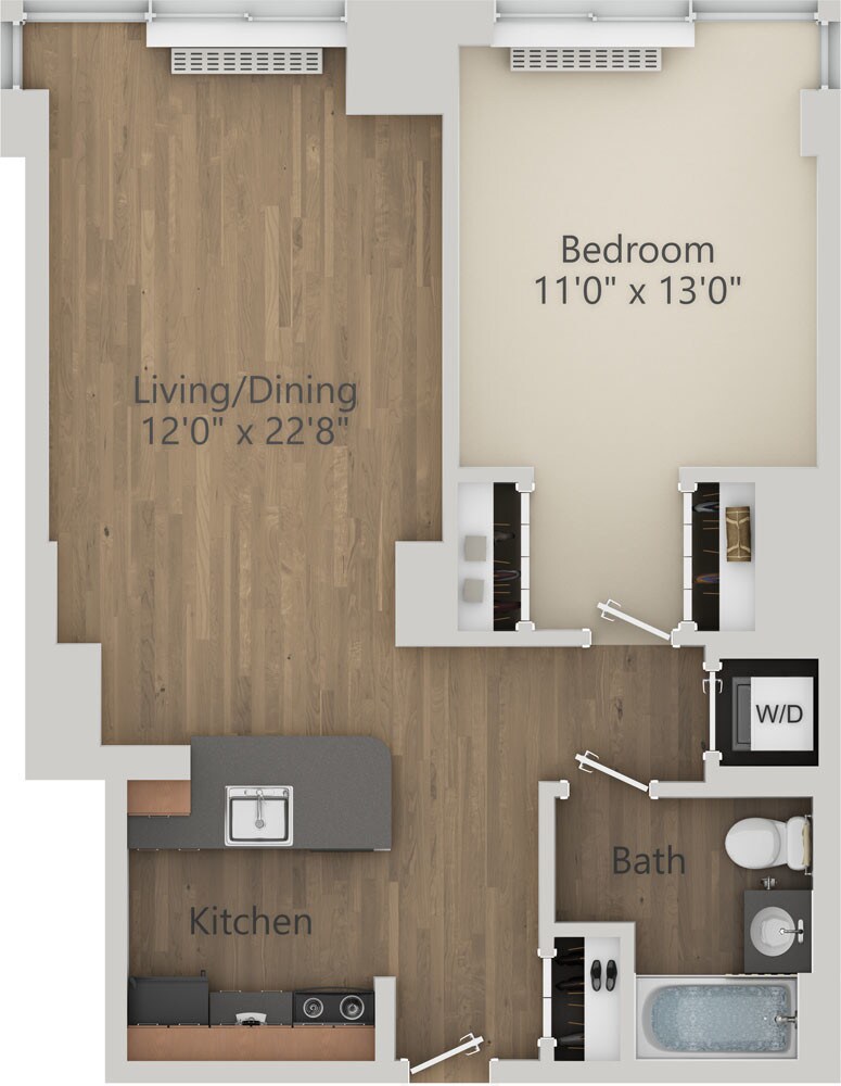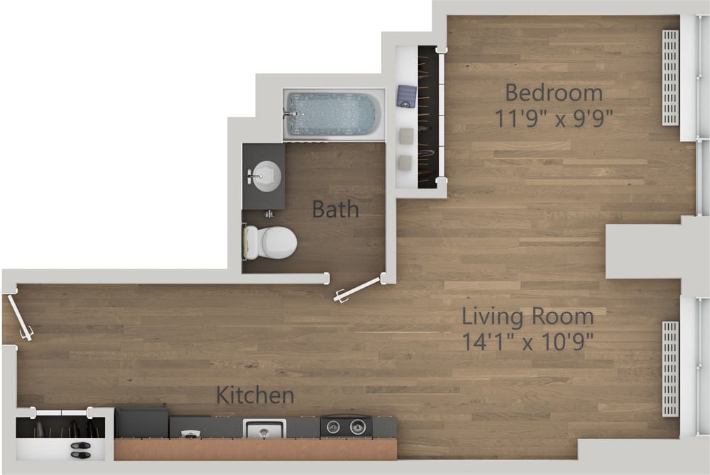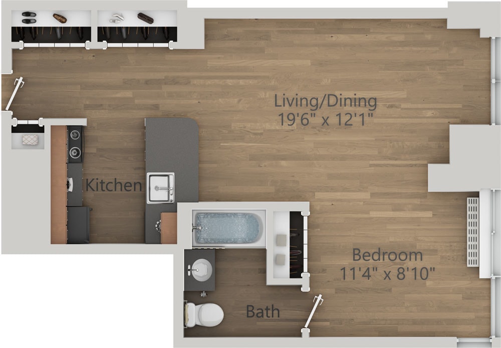Estudio, 1 Baño, 523 pies²Disponible AhoraGalería del Modelo