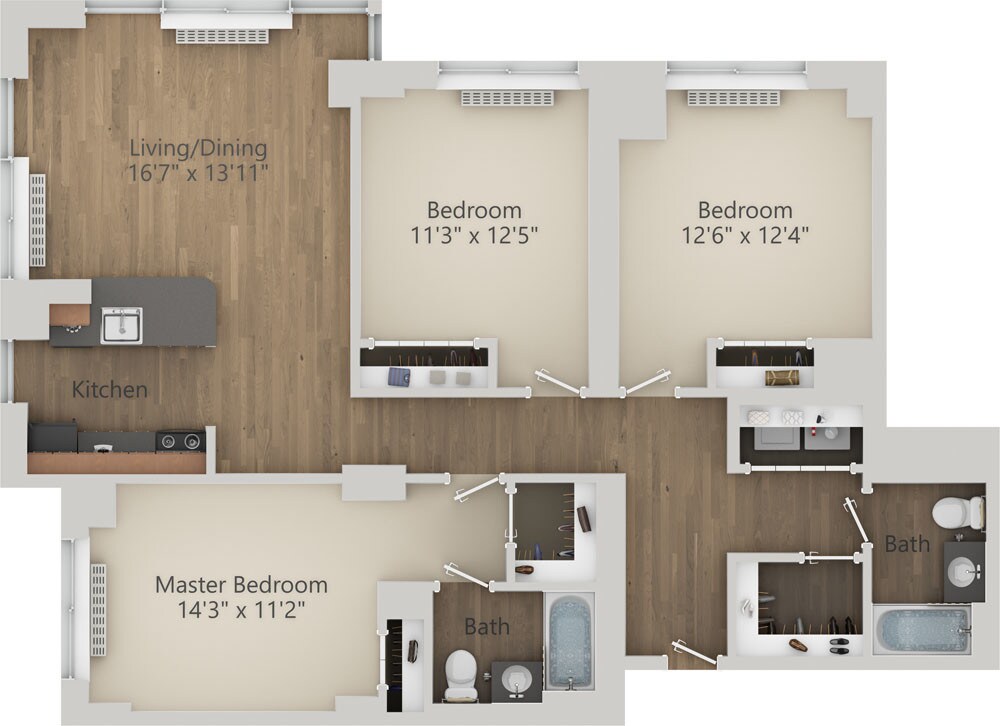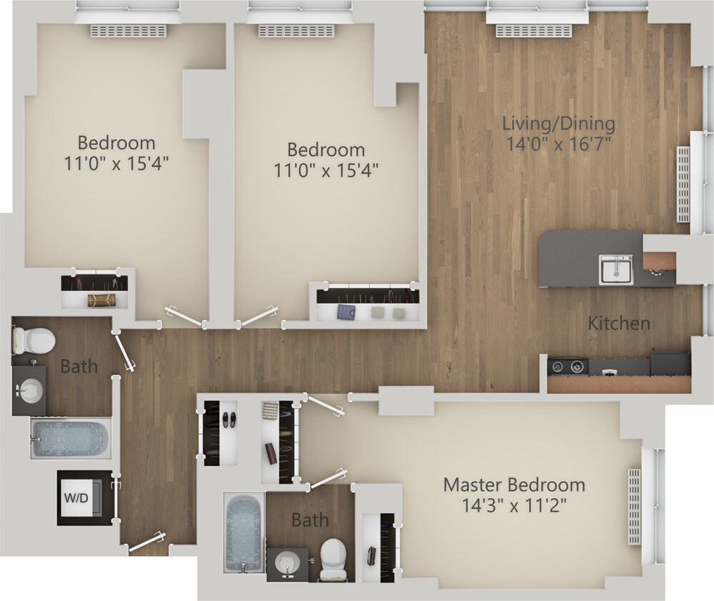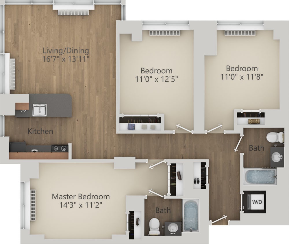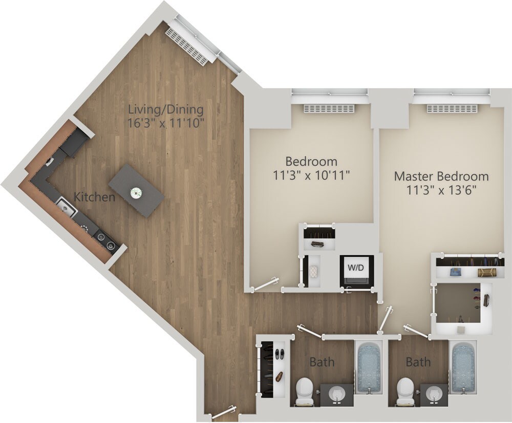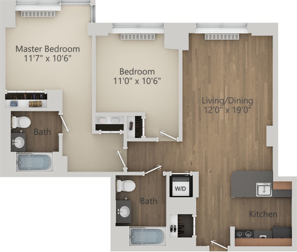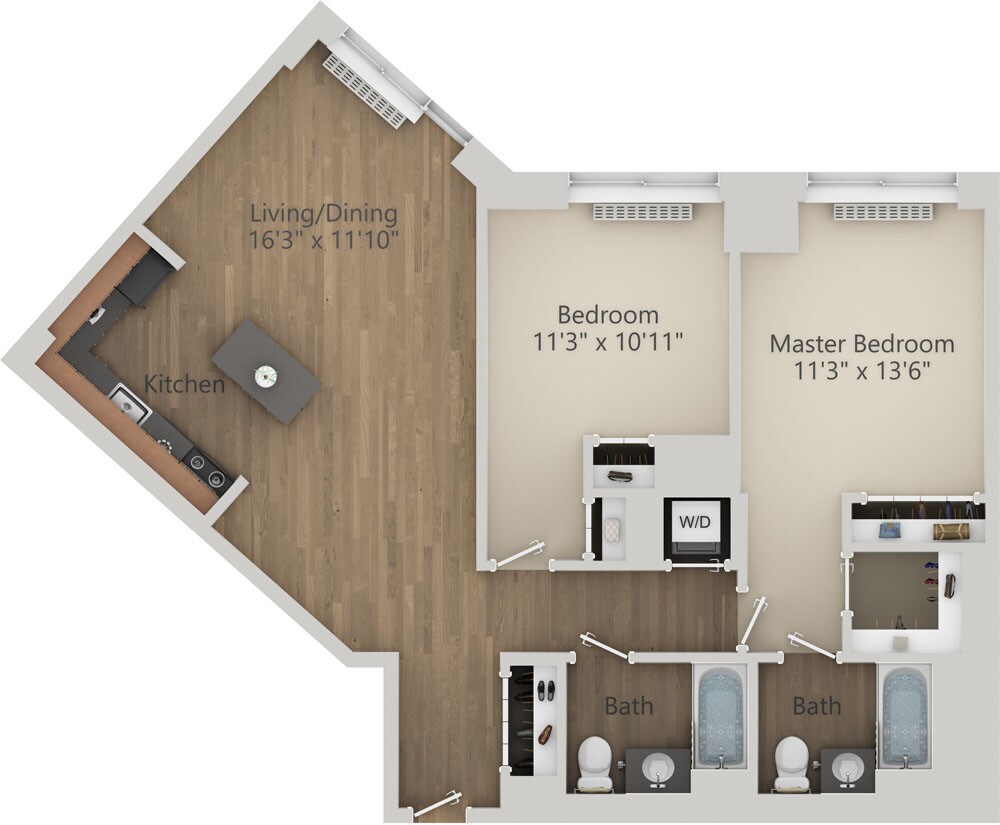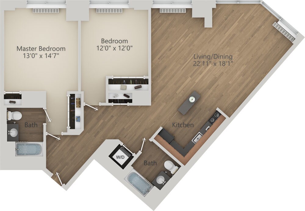 Estudio, 1 Baño, 523 pies²Disponible AhoraGalería del Modelo