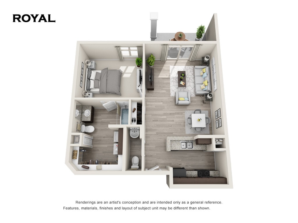 Modelo de apartamento: Royal$1,4001 Dormitorio, 1.5 Baños, 814 sq ftDisponible January 14, 2026![]()