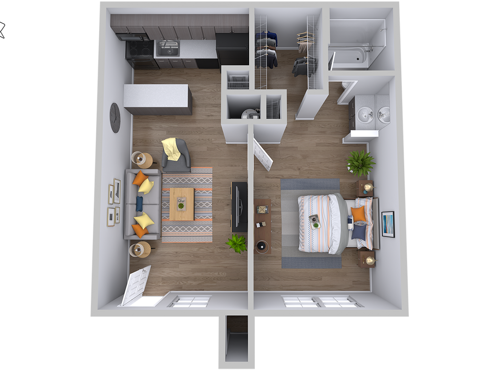 Modelo de apartamento: A31 Dormitorio, 1 Baño, 666 sq ftDisponible December 23, 2025![]()