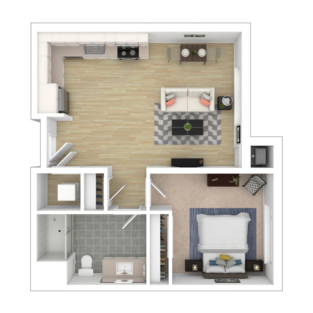 Estudio, 1 Baño, 720 pies²El más grandeEsta opción tiene las unidades más grandes para este modeloGalería del Modelo