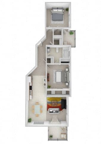 Modelo de apartamento: B1Desde $1,5062 Dormitorios, 1 Baño, 1031 sq ftDisponible Ahora![]()