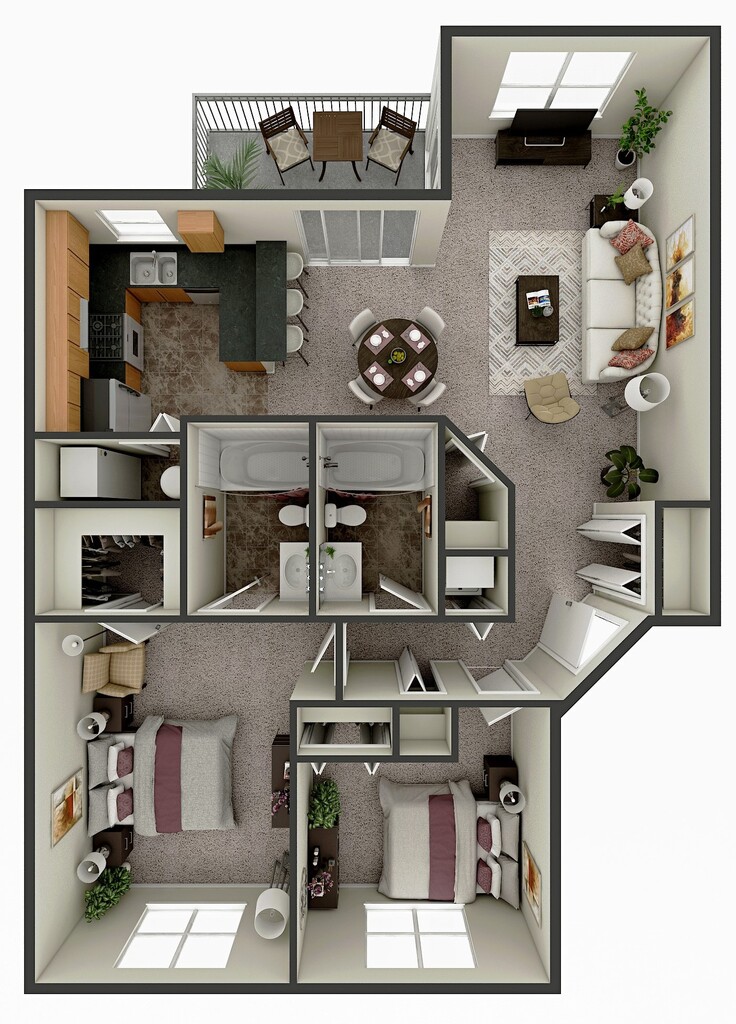2 Dormitorios, 2 Baños, 950 pies²Disponible AhoraGalería del Modelo
