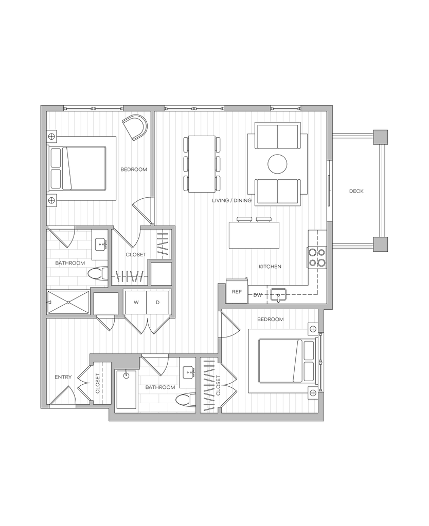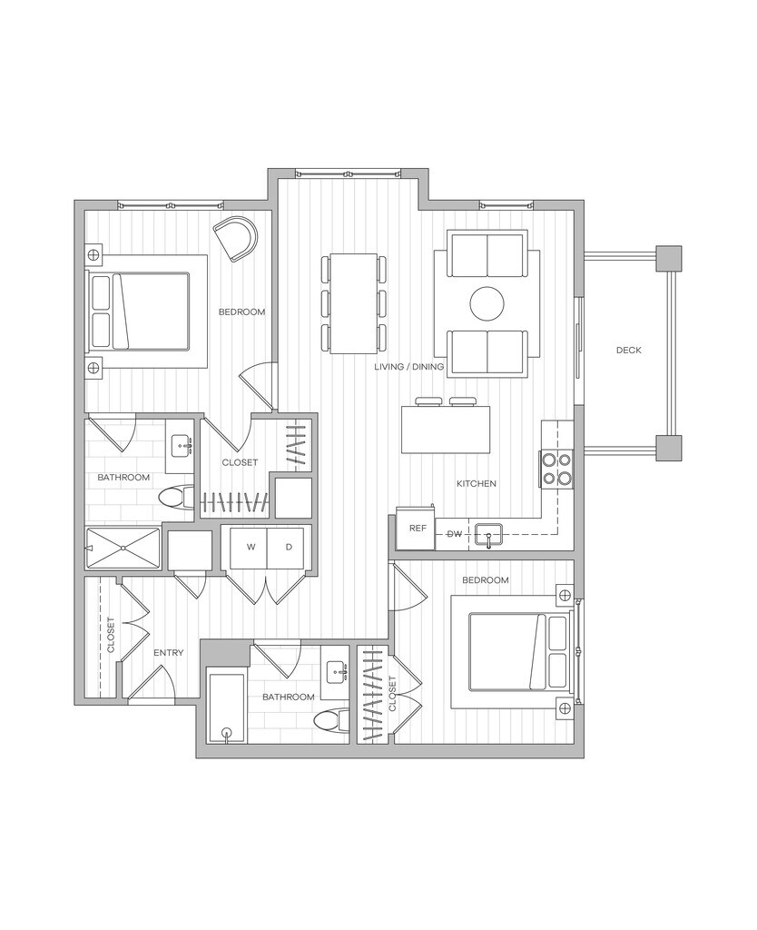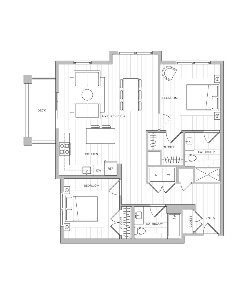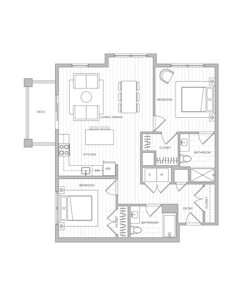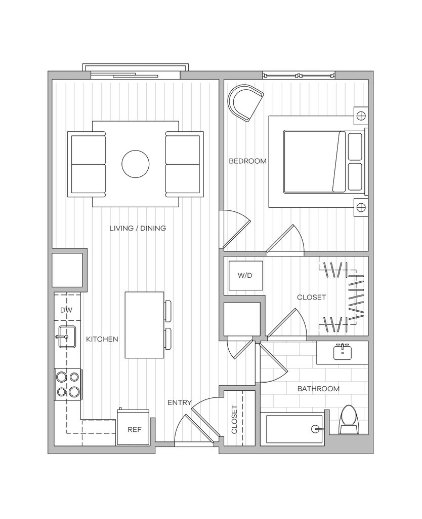 Unidad: 512-207 - Imagen 1 Unidad de apartamento: 512-105Modelo de apartamento: 1 Bedroom$2,1751 Dormitorio, 1 Baño, 735 sq ftDisponible Ahora![]()
