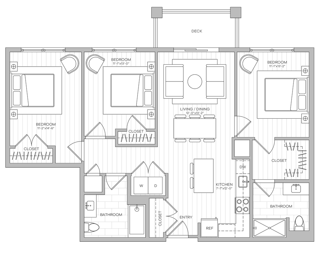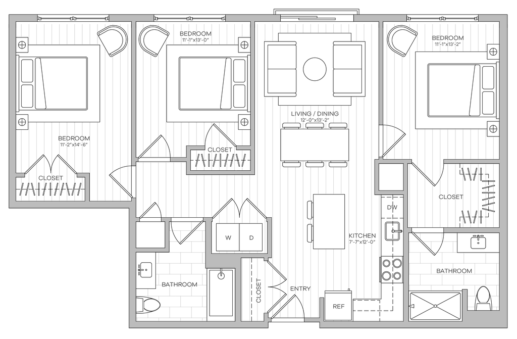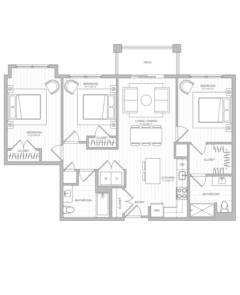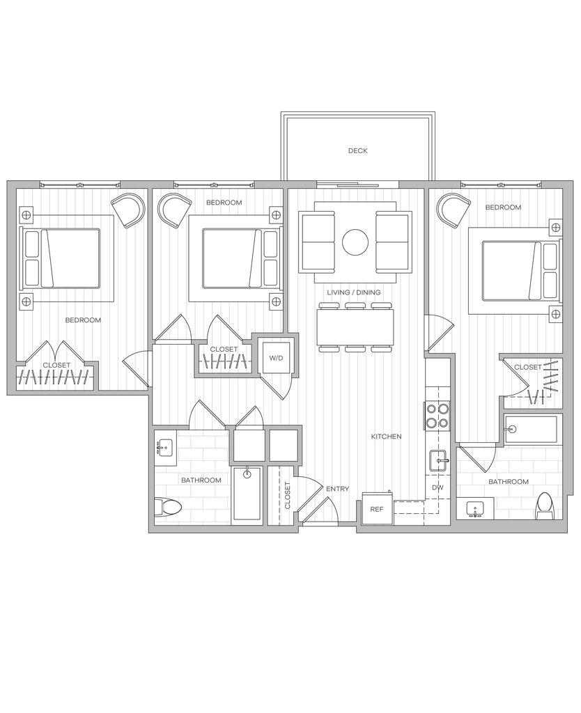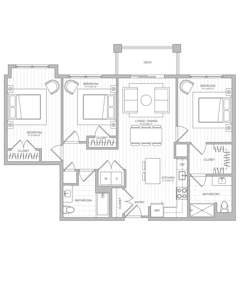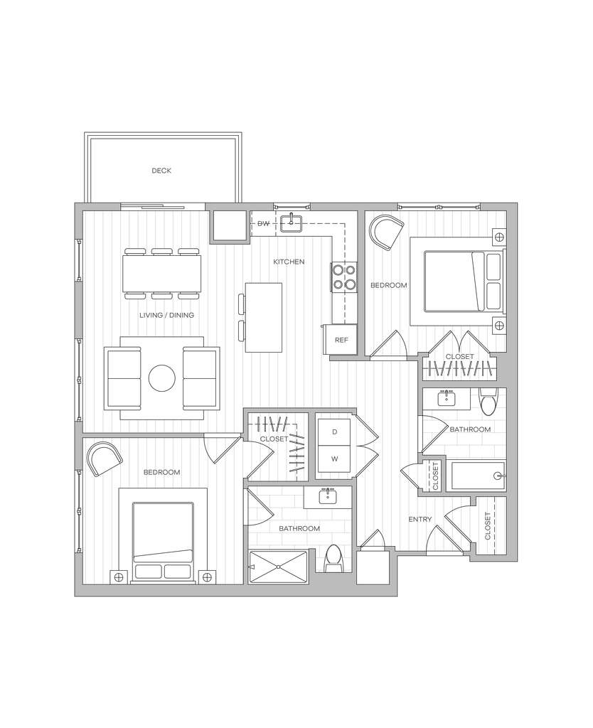 Unidad: 512-207 - Imagen 1 Unidad de apartamento: 512-105Modelo de apartamento: 1 Bedroom$2,1751 Dormitorio, 1 Baño, 735 sq ftDisponible Ahora![]()