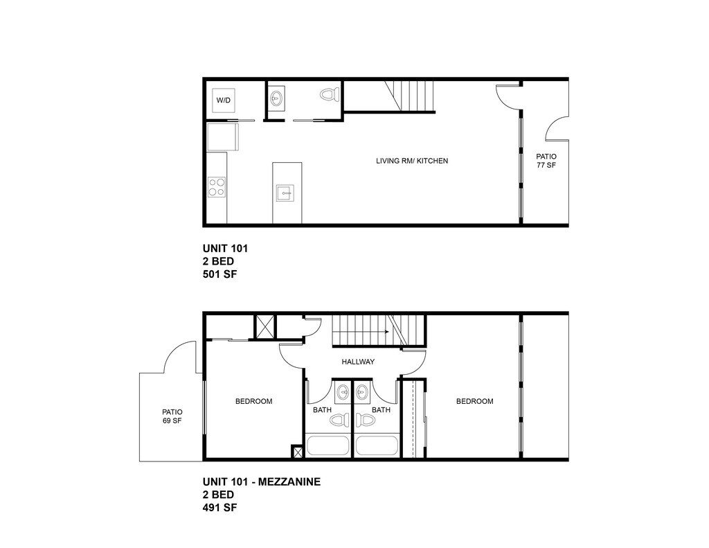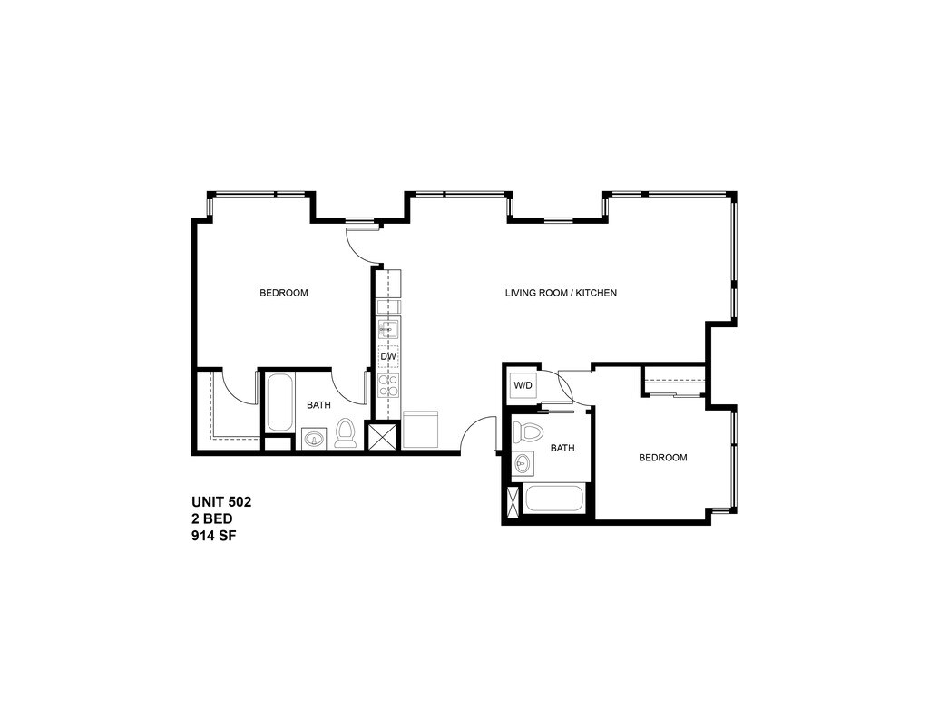 2 Dormitorios, 1 Baño, 781 pies²Galería del Modelo
