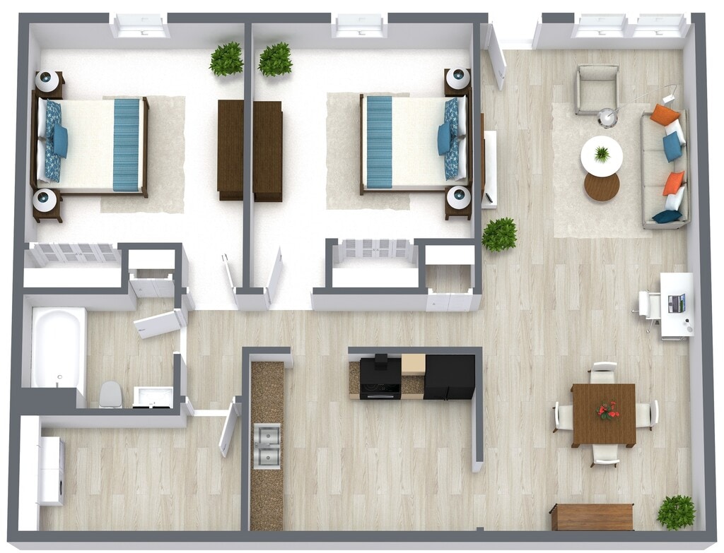 Modelo de apartamento: Hadley2 Dormitorios, 2 Baños, 864 sq ftNo Disponible![]()