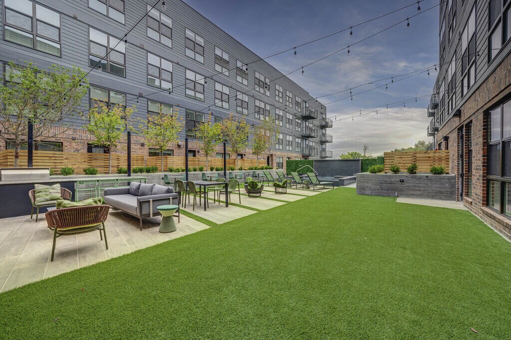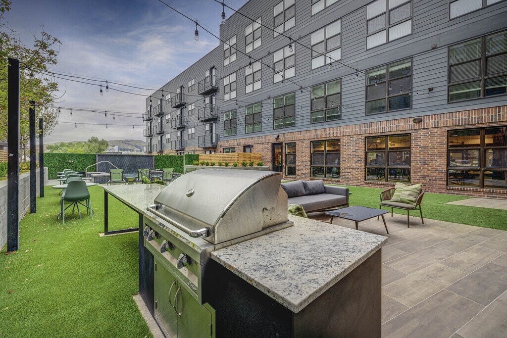 Venga y siéntase cómodo, quédese un tiempo. Nunca querrá salir de su casa en Slate Apartments. Disfrute de una comunidad dinámica diseñada con un ambiente industrial, llena de amenidades que tienen como objetivo mejorar su bienestar general, felicidad y comodidad. Descanse y relájese en la bañera de hidromasaje o en la ducha de inmersión fría, céntrese en la suite Wellness con sauna y sala de meditación y dé un paseo por el tranquilo patio.