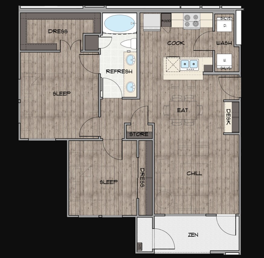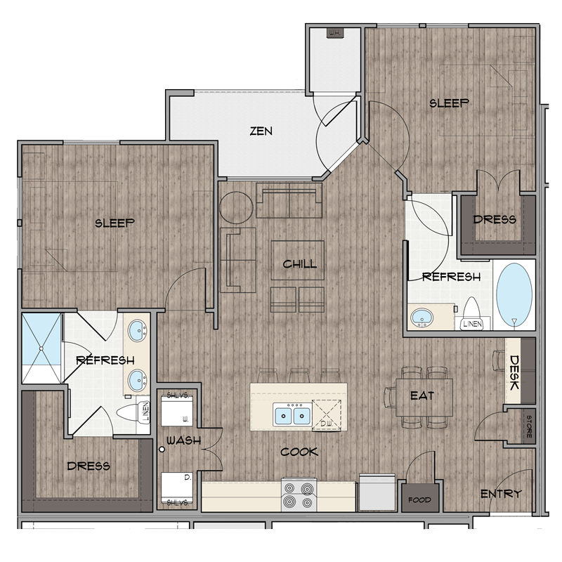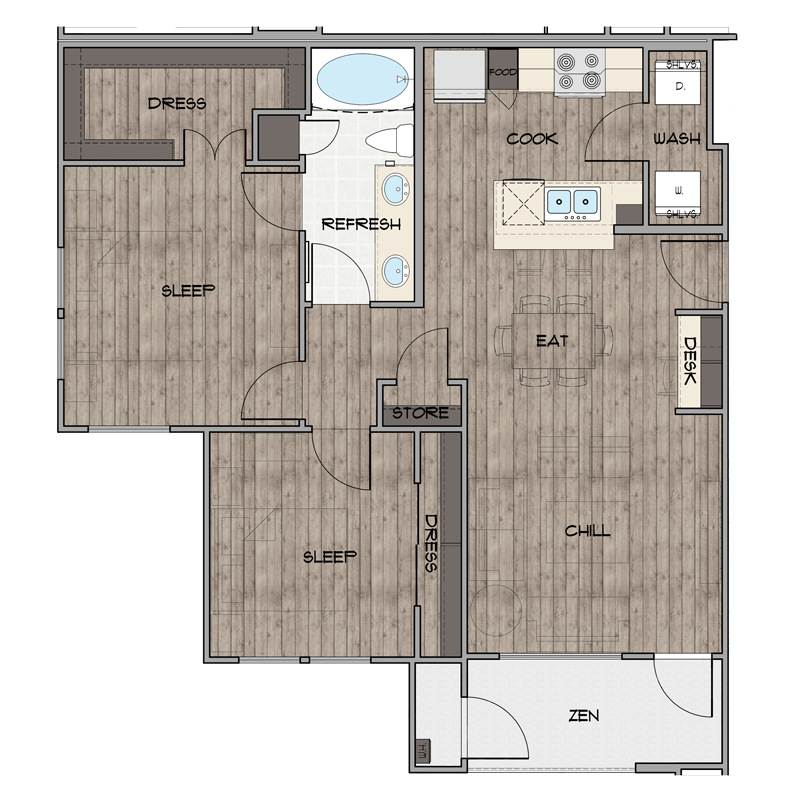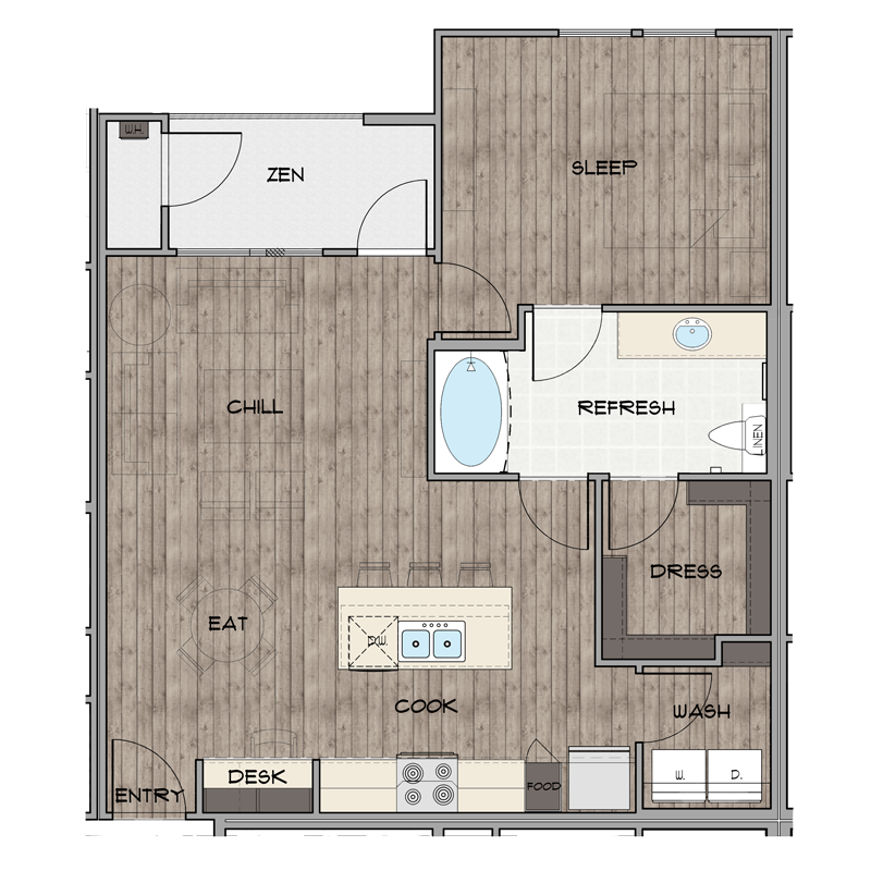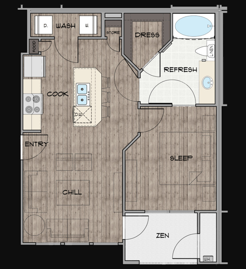 1 Dormitorio, 1 Baño, 779 pies²Disponible AhoraGalería del Modelo